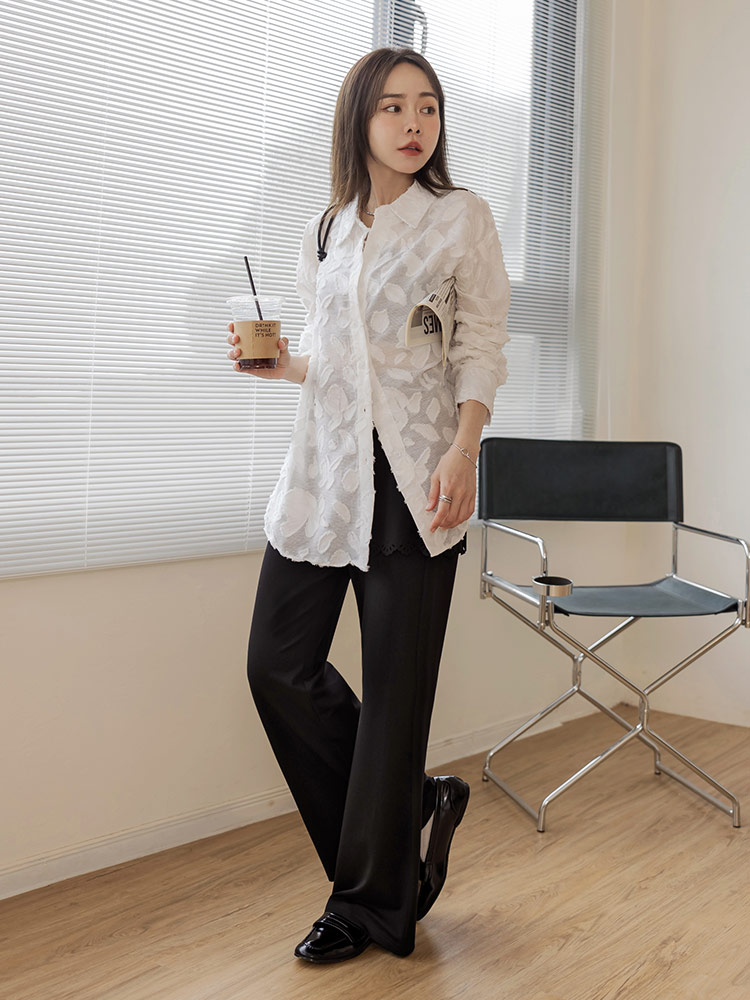 Cut-Out Lace Patchwork 3/4 Sleeve Blouse (XL~4XL)