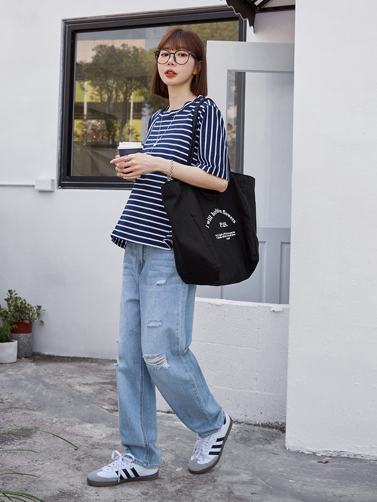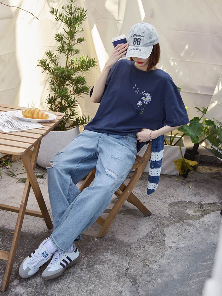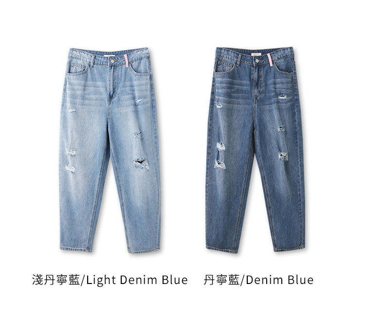Ripped Contrast Stitch Cotton Denim Jeans (2XL~4XL)