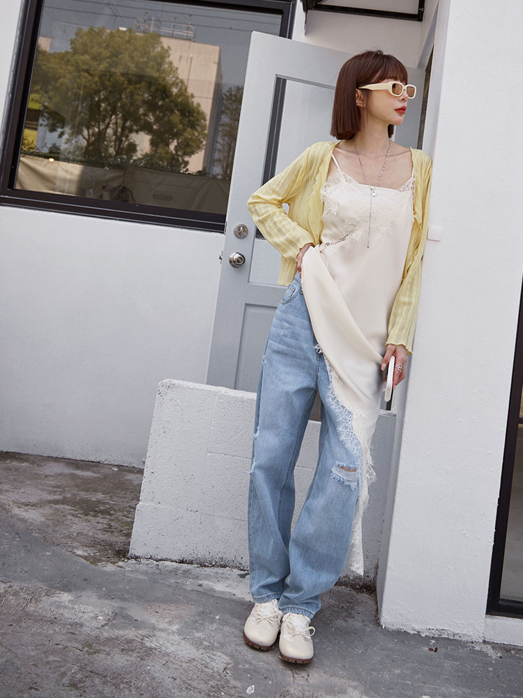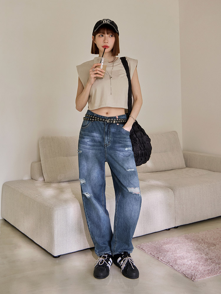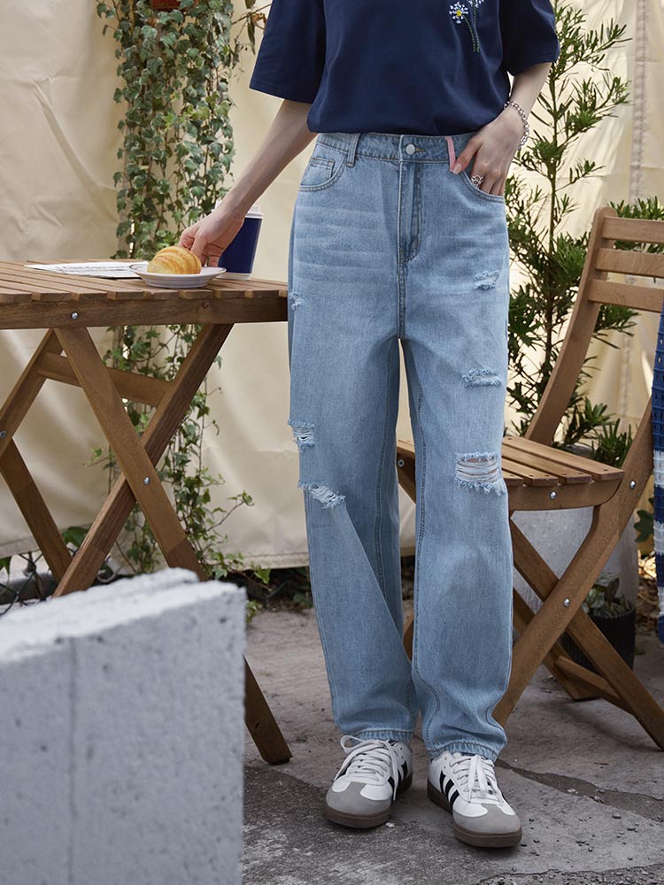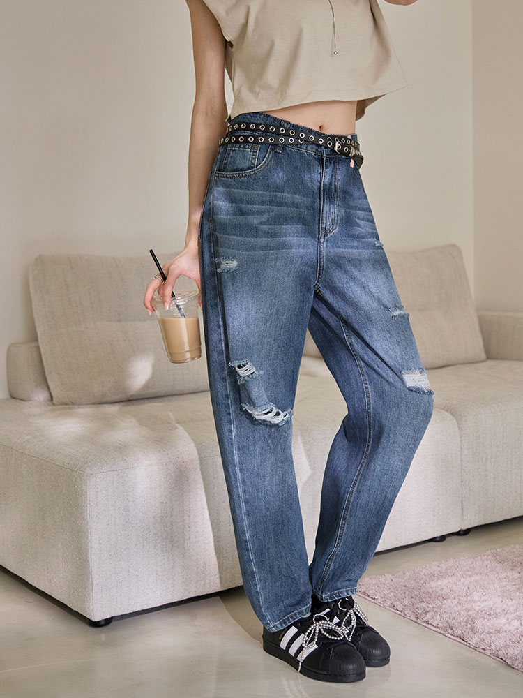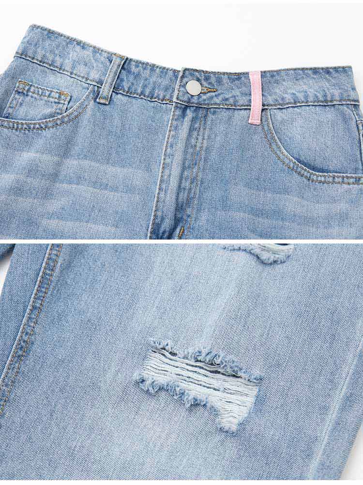 -5KG High-Waist Washed Denim Jeans with Frayed Hem