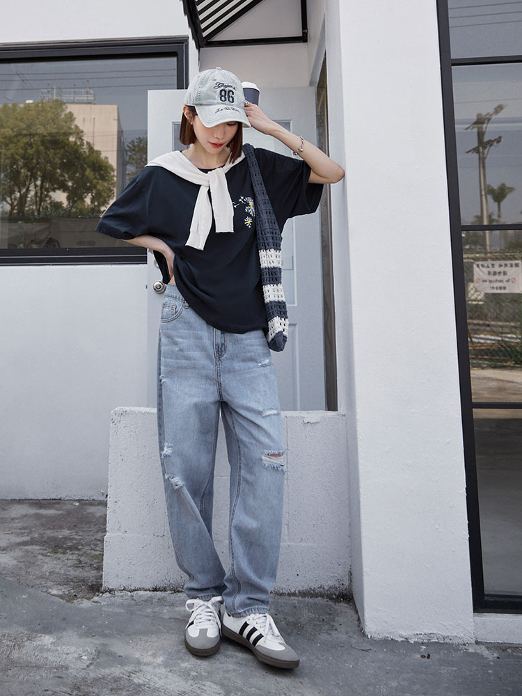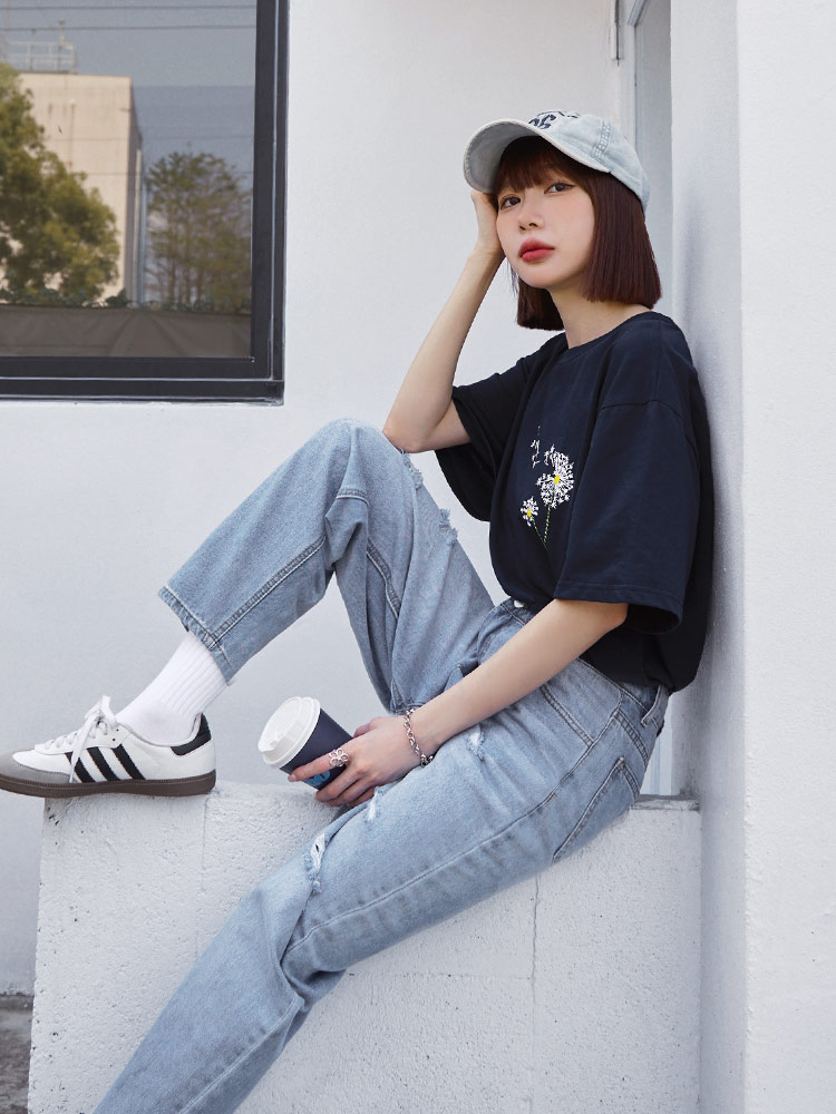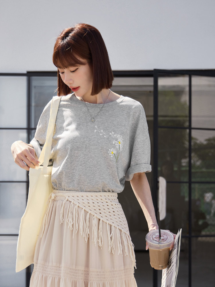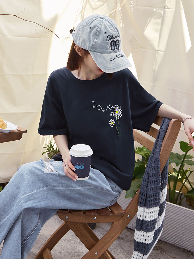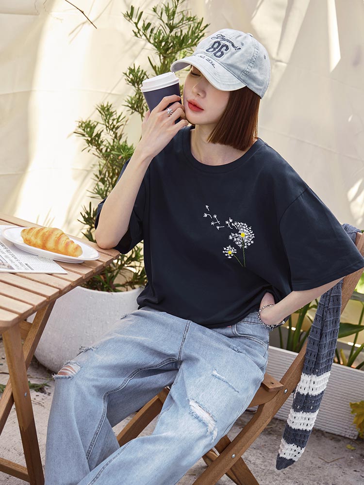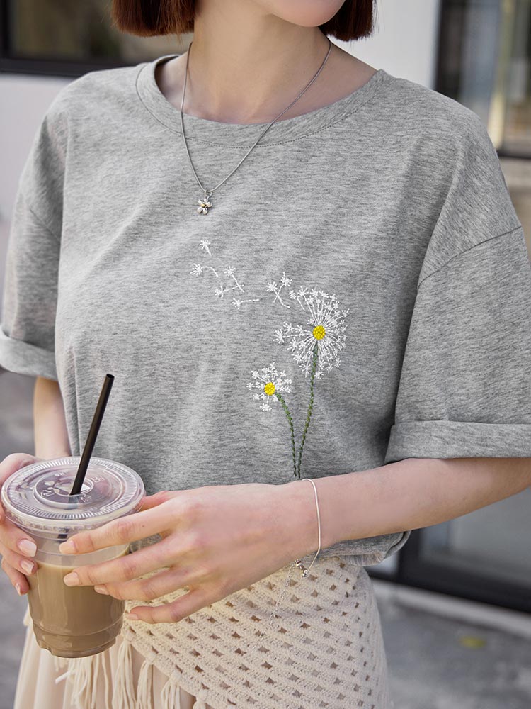 Pure Cotton Dandelion Embroidered Short-Sleeved Top