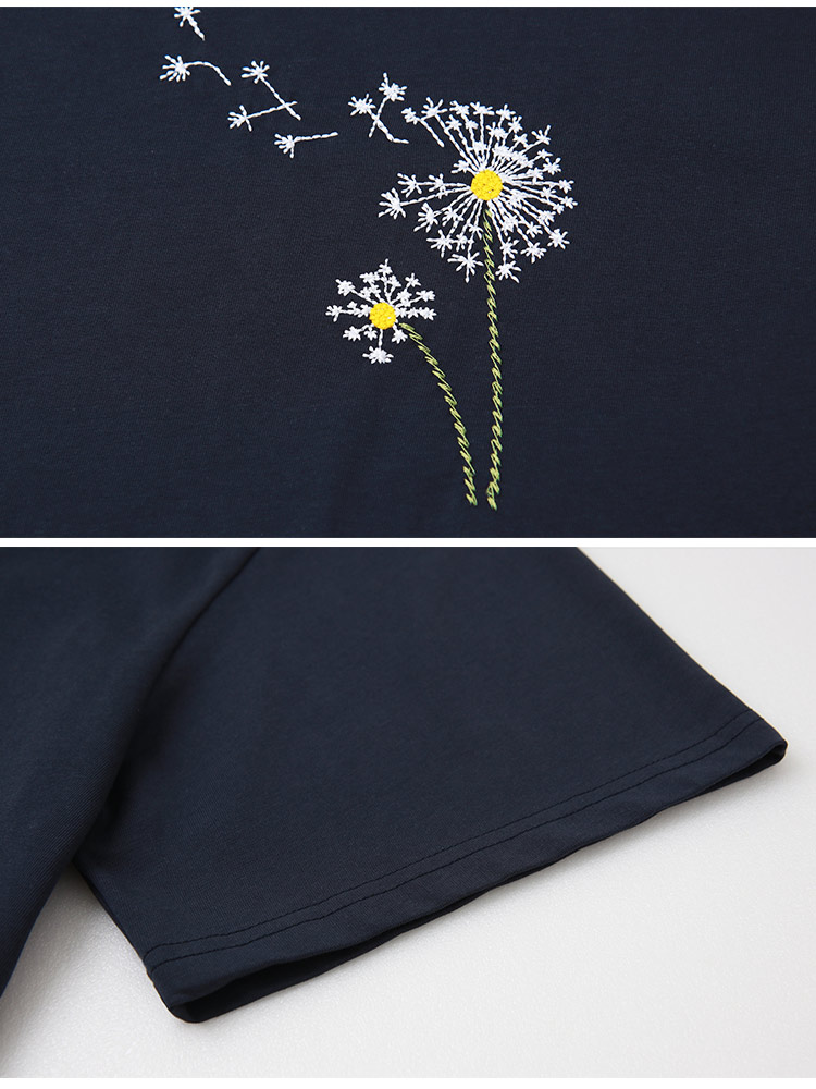 Product Feature: โ Crafted from pure cotton fabric for a soft, skin-friendly feel. โ Features exquisite dandelion embroidery for a unique touch. โ Designed with a relaxed fit that flatters all body shapes.