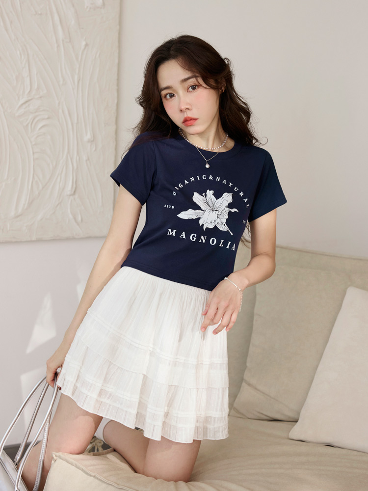 Product Feature: โ Crafted from soft, skin-friendly cotton fabric โ Flattering fitted silhouette for comfortable wear โ Eye-catching floral print design on the chest โ Stylish high-low hem for an enhanced figure