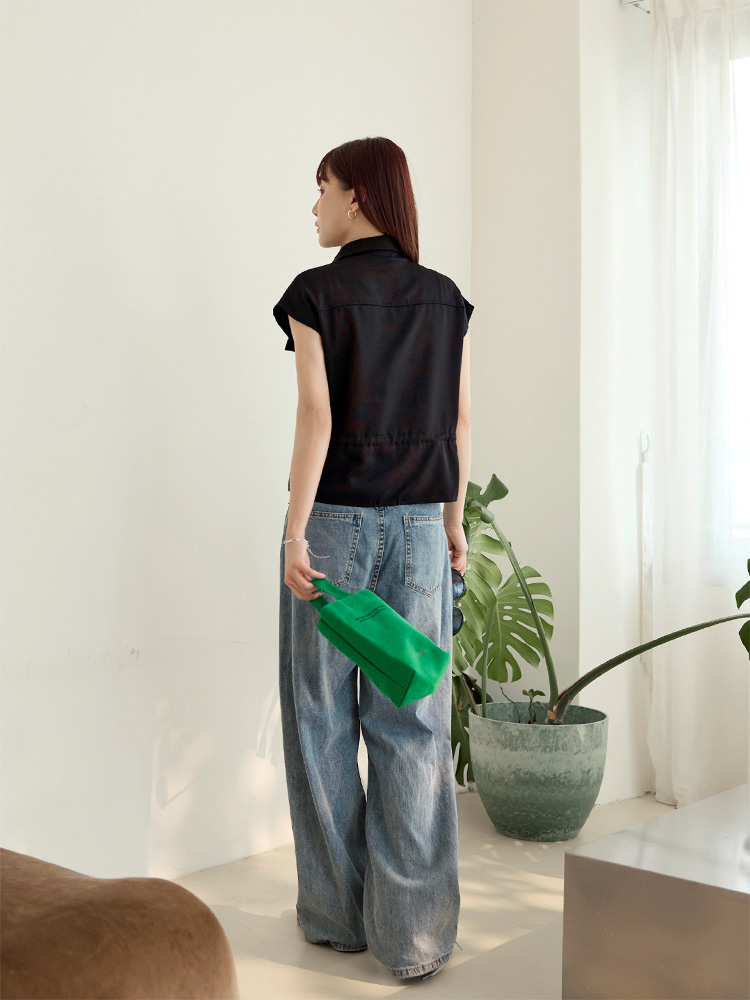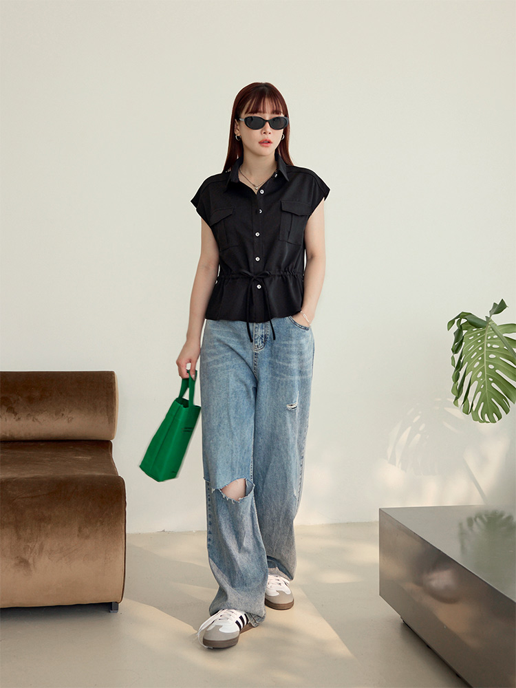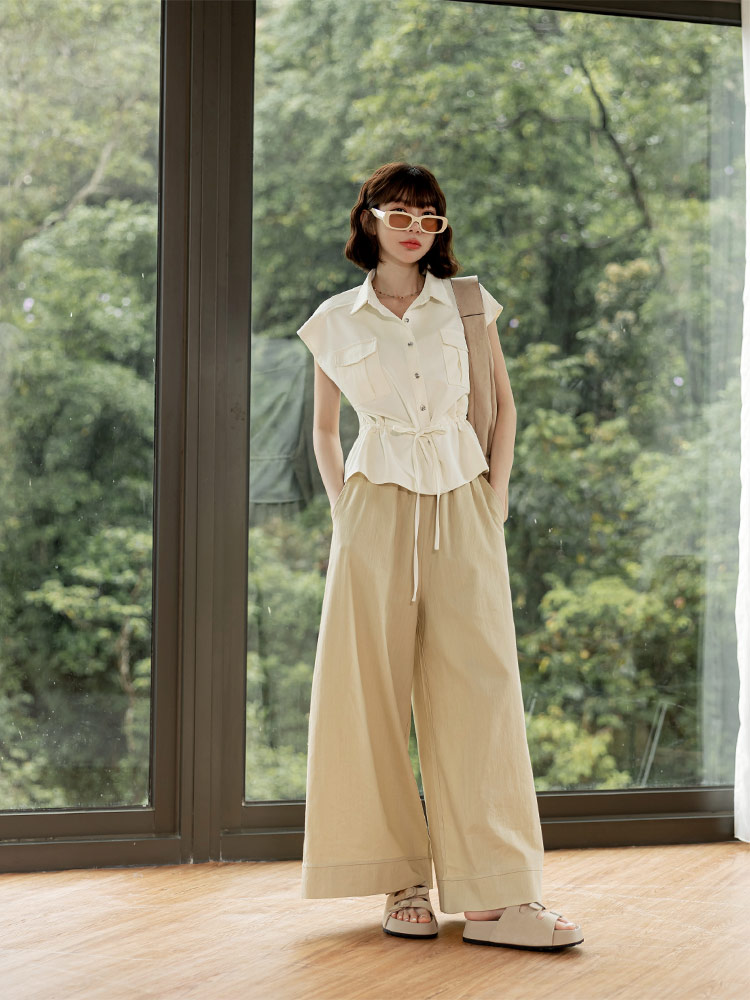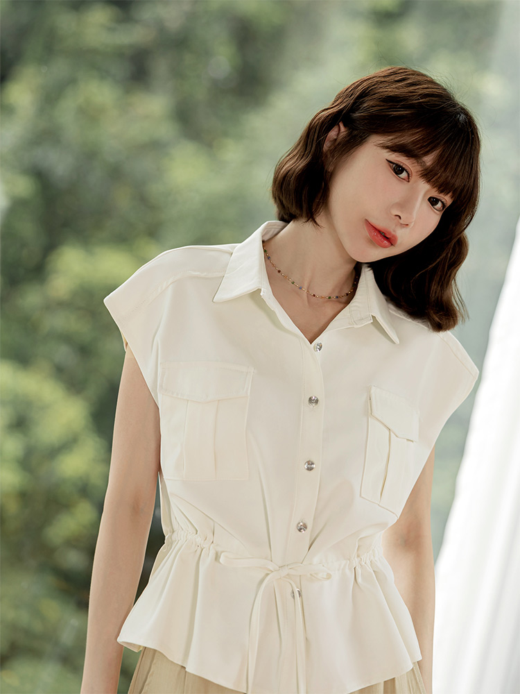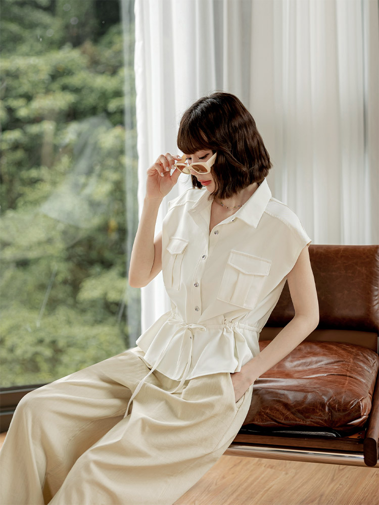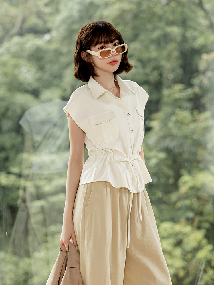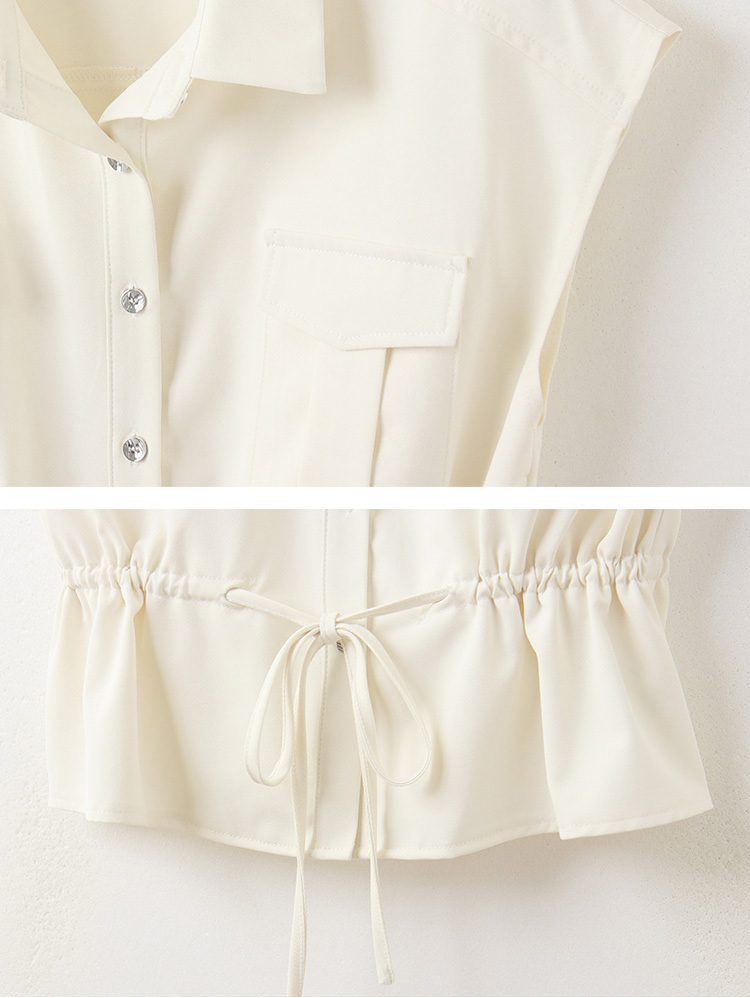 Product Feature: โ Functional buttons and real pockets for practicality. โ Adjustable drawstring waist to accentuate a slender silhouette. โ Flattering cap sleeves designed to enhance arm lines. โ Versatile button-front design, perfect for wearing alone or as a stylish outer layer.