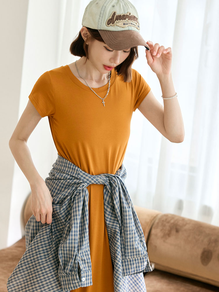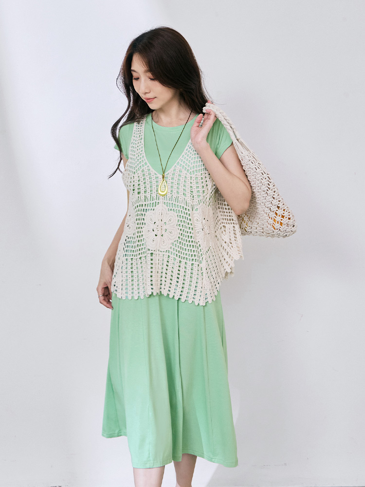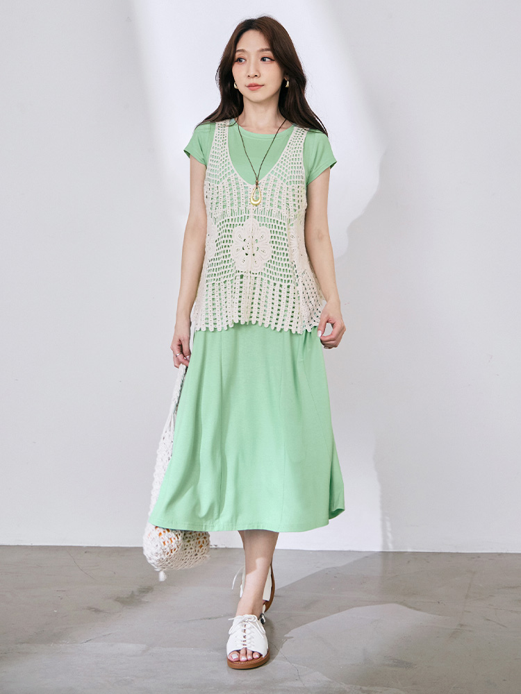 Layered Look Round Neck Short Sleeve Knitted Top (M~3XL)