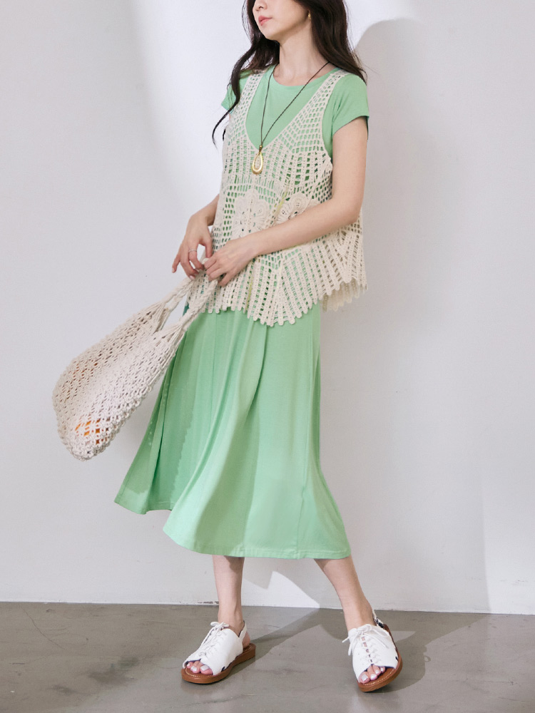 Air COOL UV Cool-Touch Round Neck Waist-Pleated Dress (2XL~3XL)