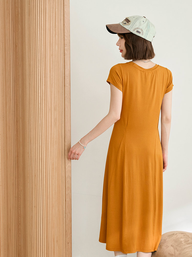 Product Feature: โ Crafted from a cool-touch fabric with a soft, stretchy feel for ultimate comfort. โ Features a flattering round neck design to enhance your facial silhouette. โ Designed with a waist-pleated detail to create a beautiful, flattering curve.