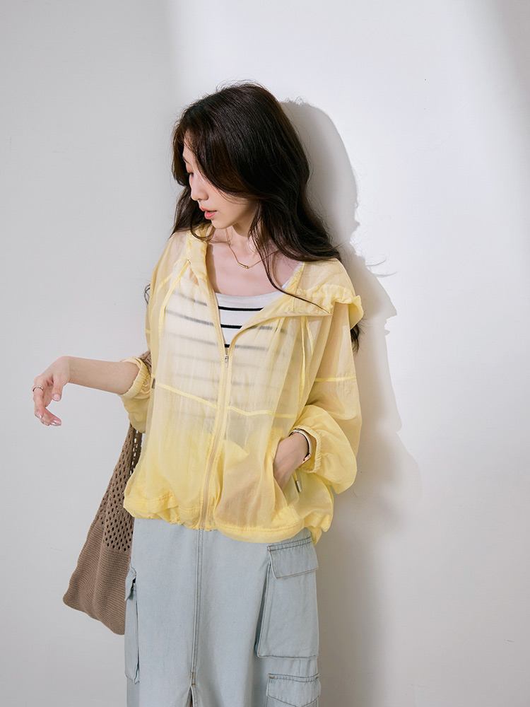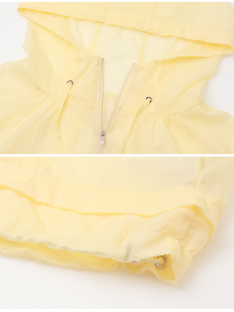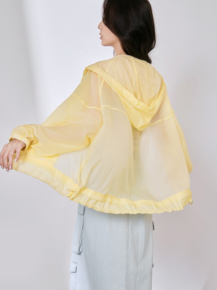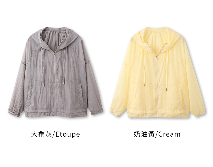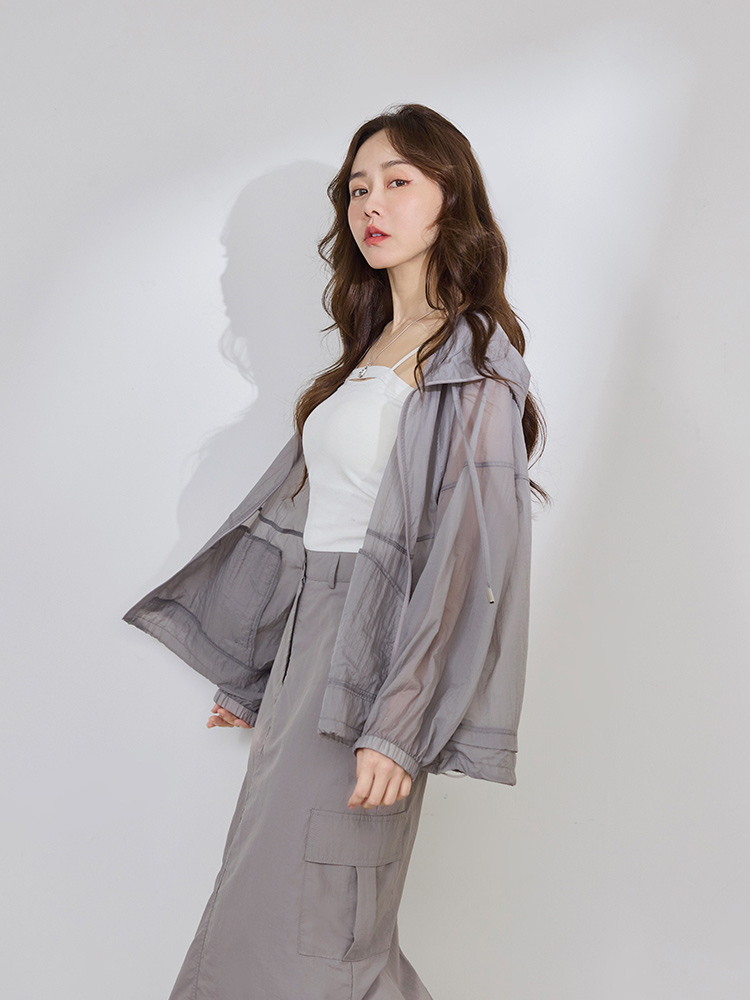 Product Feature: โ Crafted from a lightweight, cool-touch fabric for exceptional breathability and comfort. โ Features a sheer texture and loose silhouette, designed to flatter all body types and facilitate effortless layering. โ Equipped with practical features including a functional front zip, real side pockets, and adjustable drawstrings at the hem and hood. โ Finished with elasticated cuffs for a secure and comfortable fit.