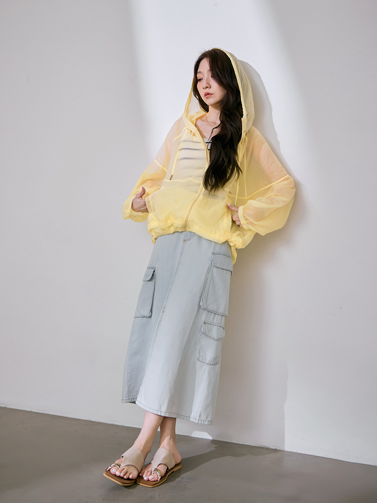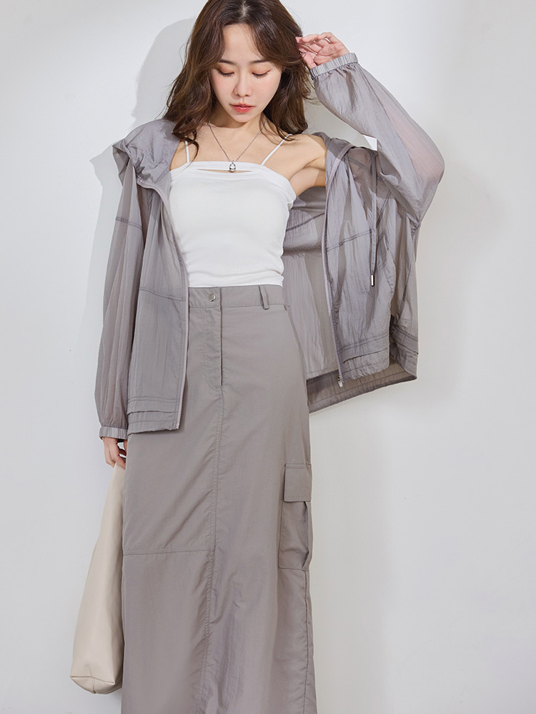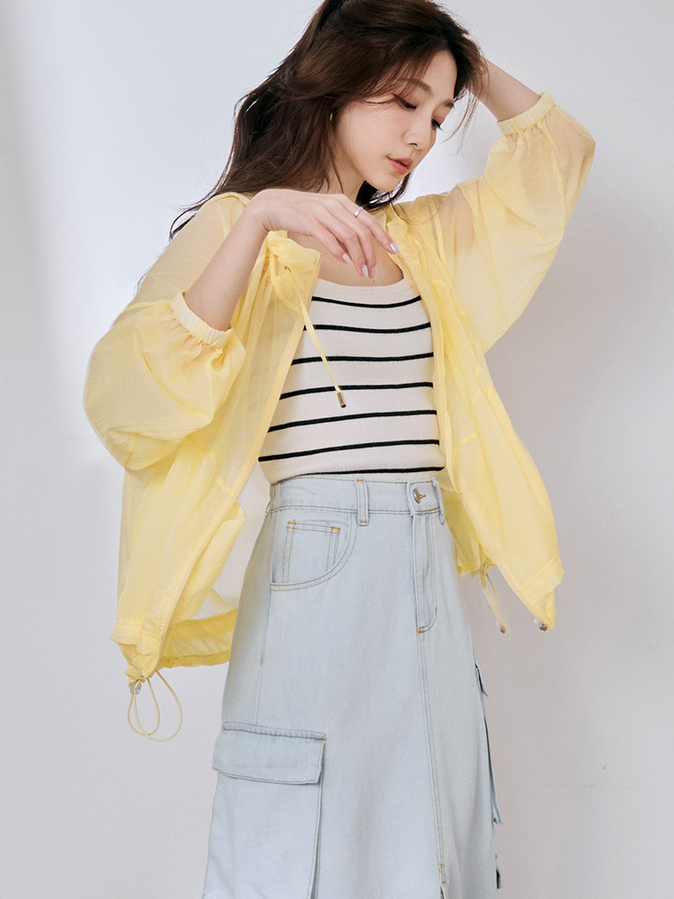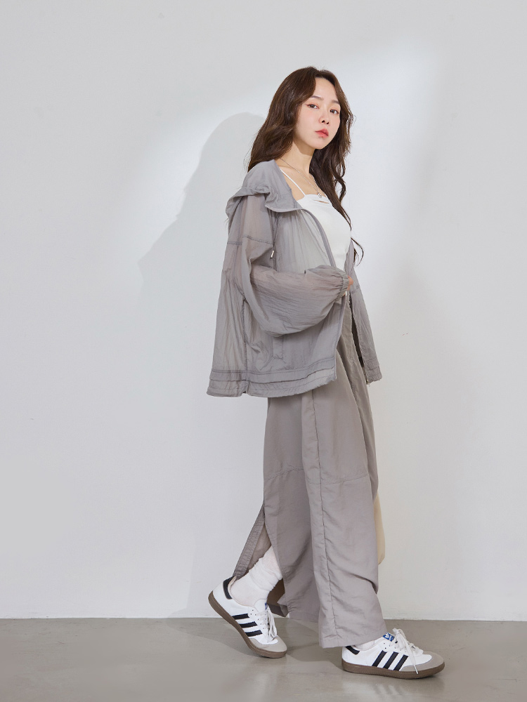 Product Feature: โ Crafted from a lightweight, cool-touch fabric for exceptional breathability and comfort. โ Features a sheer texture and loose silhouette, designed to flatter all body types and facilitate effortless layering. โ Equipped with practical features including a functional front zip, real side pockets, and adjustable drawstrings at the hem and hood. โ Finished with elasticated cuffs for a secure and comfortable fit.