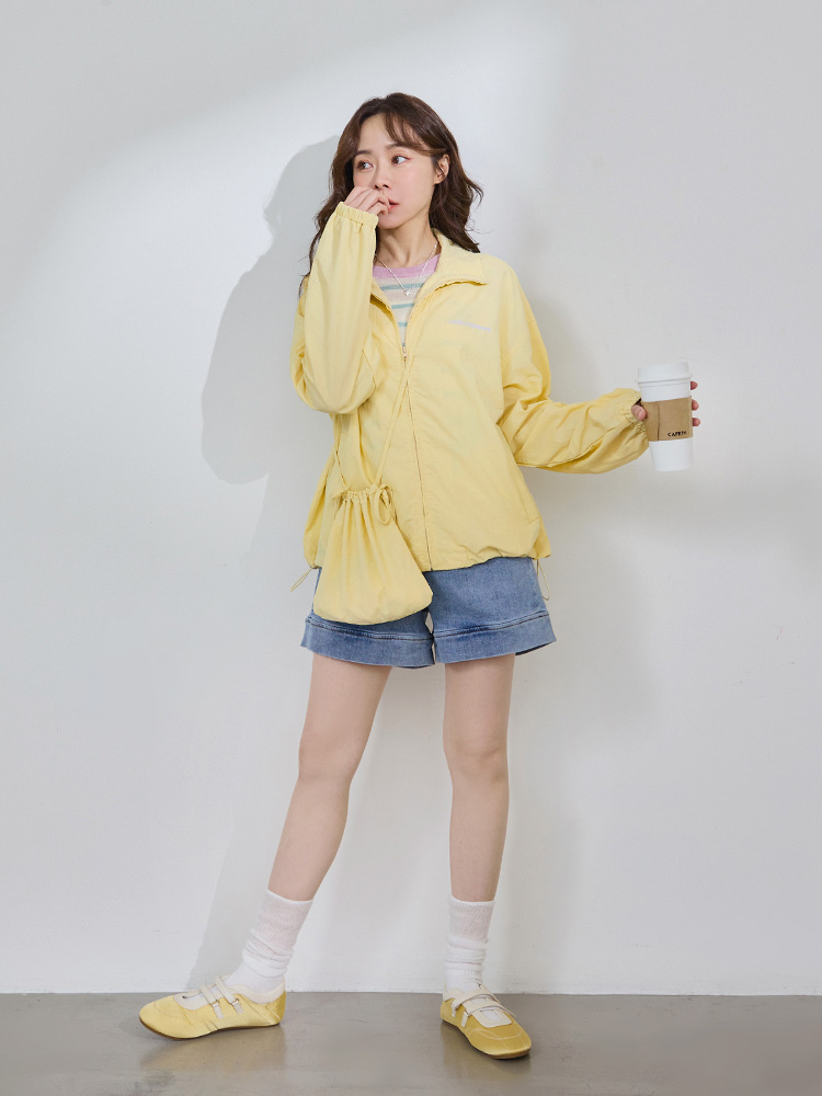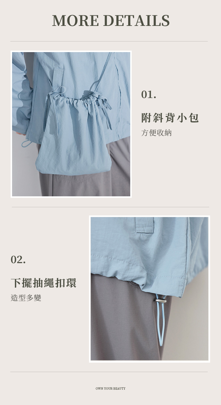 Product Feature: โ Crafted from cooling, UV-protective, and breathable fabric โ Features a full-zip front for easy wear and removal โ Equipped with functional side pockets for convenience โ Designed with an adjustable drawstring waist for a custom fit โ Includes a convenient carry bag, perfect for small essentials and jacket storage