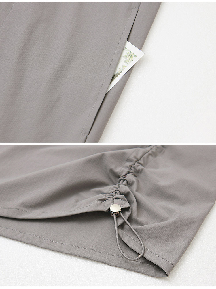 Product Feature: โ Crafted from a comfortable, water-repellent stretch fabric. โ Designed with an adjustable waist tie to highlight your figure. โ Features adjustable double side drawstrings for versatile styling. โ Equipped with two functional side pockets for everyday essentials.