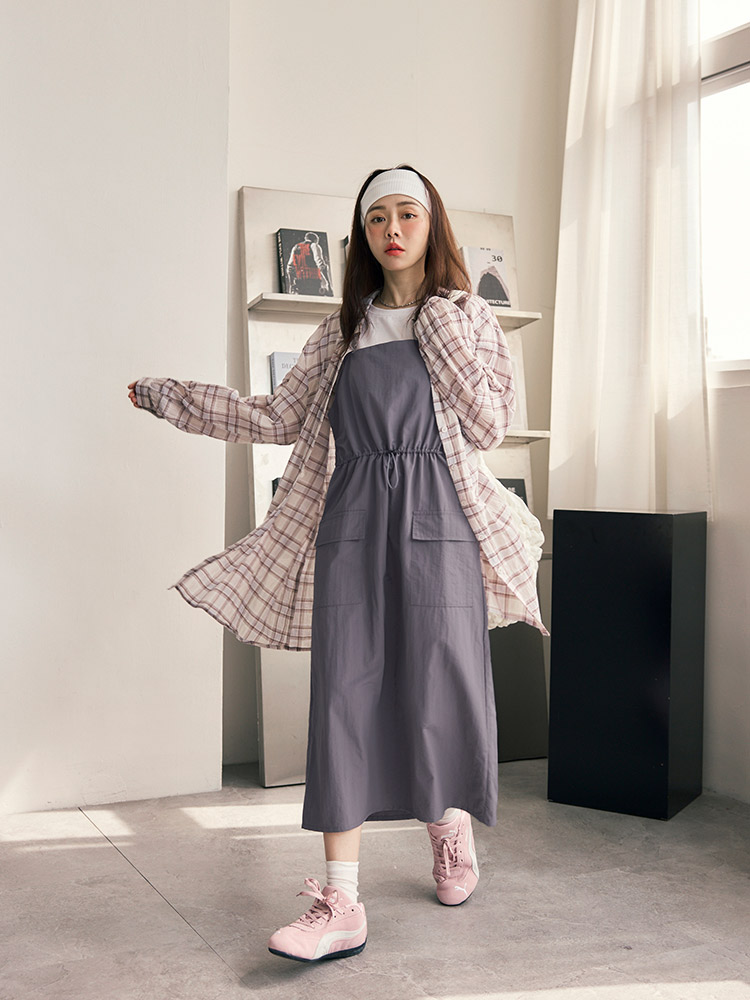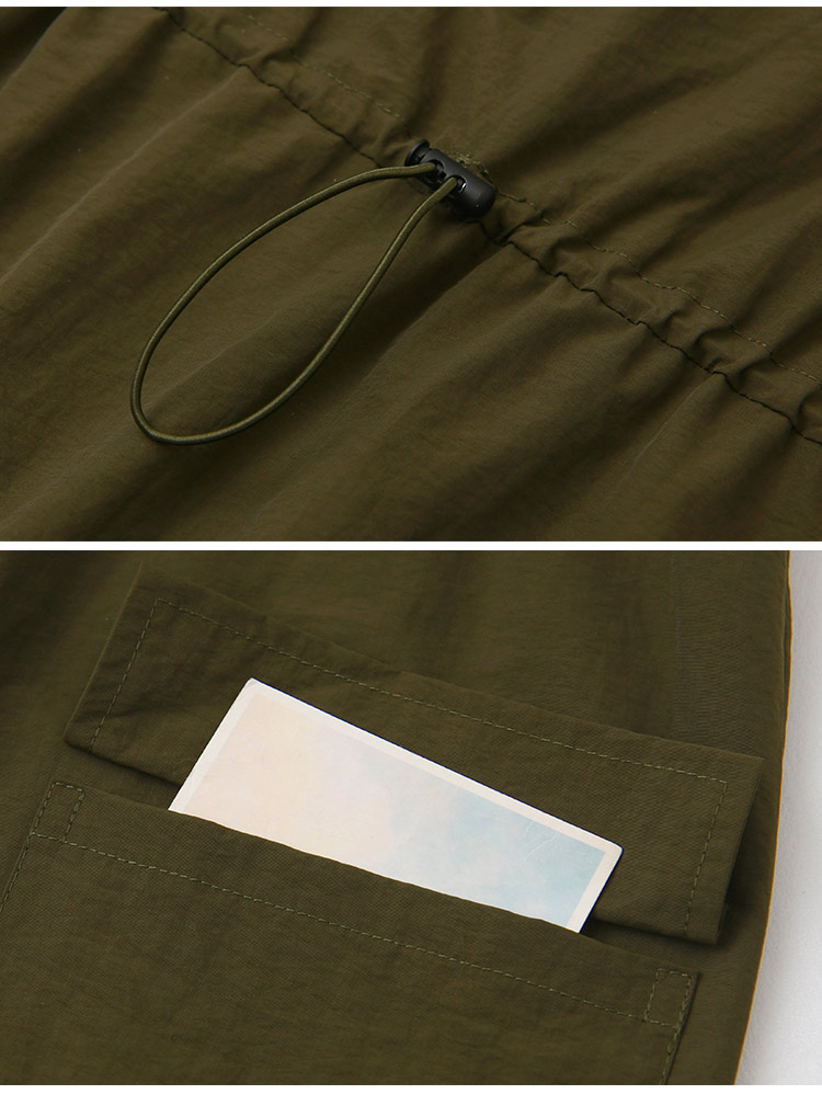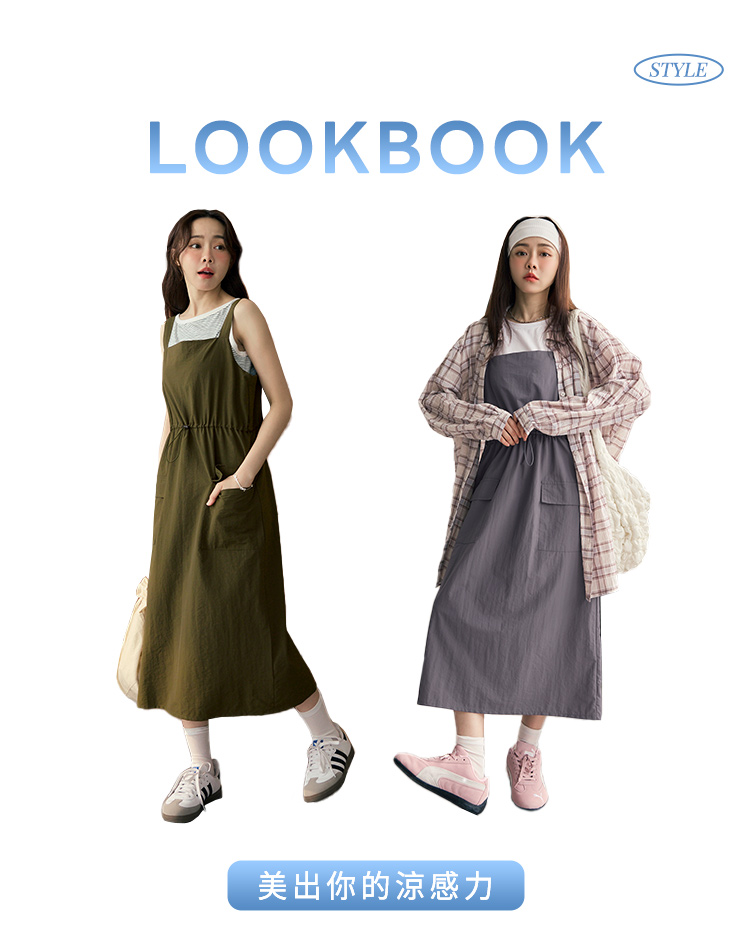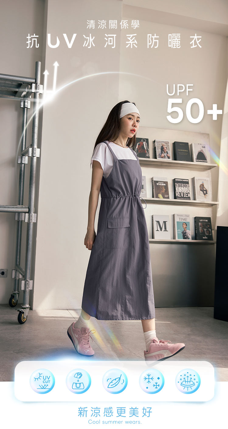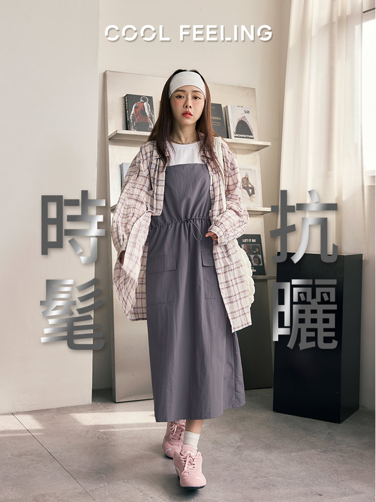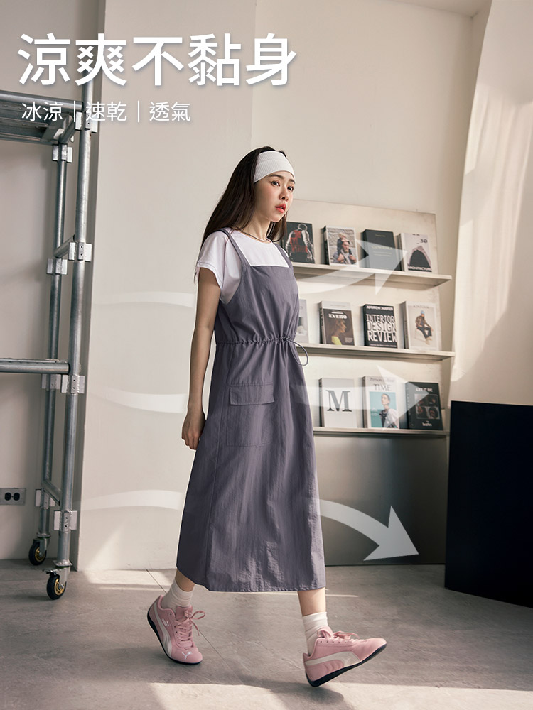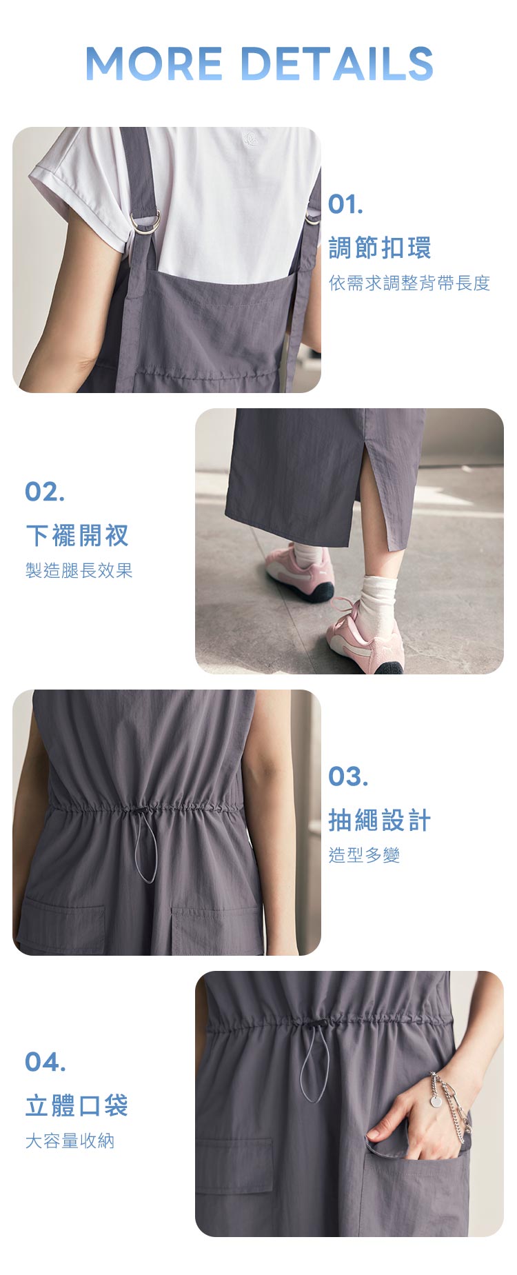 Product Feature: โ Features functional pockets for convenience. โ Equipped with an adjustable drawstring waist for a custom fit. โ Designed with adjustable shoulder straps for personalised comfort. โ Crafted from an innovative ice-feel, UV-protective, and breathable fabric.