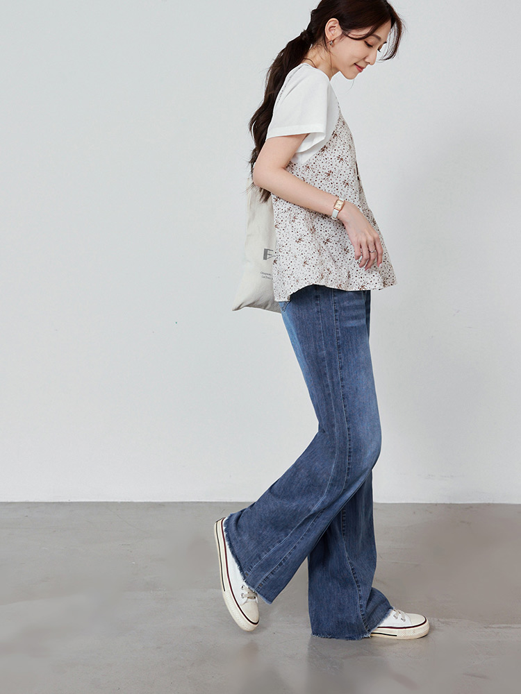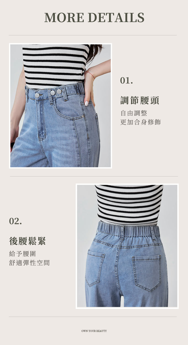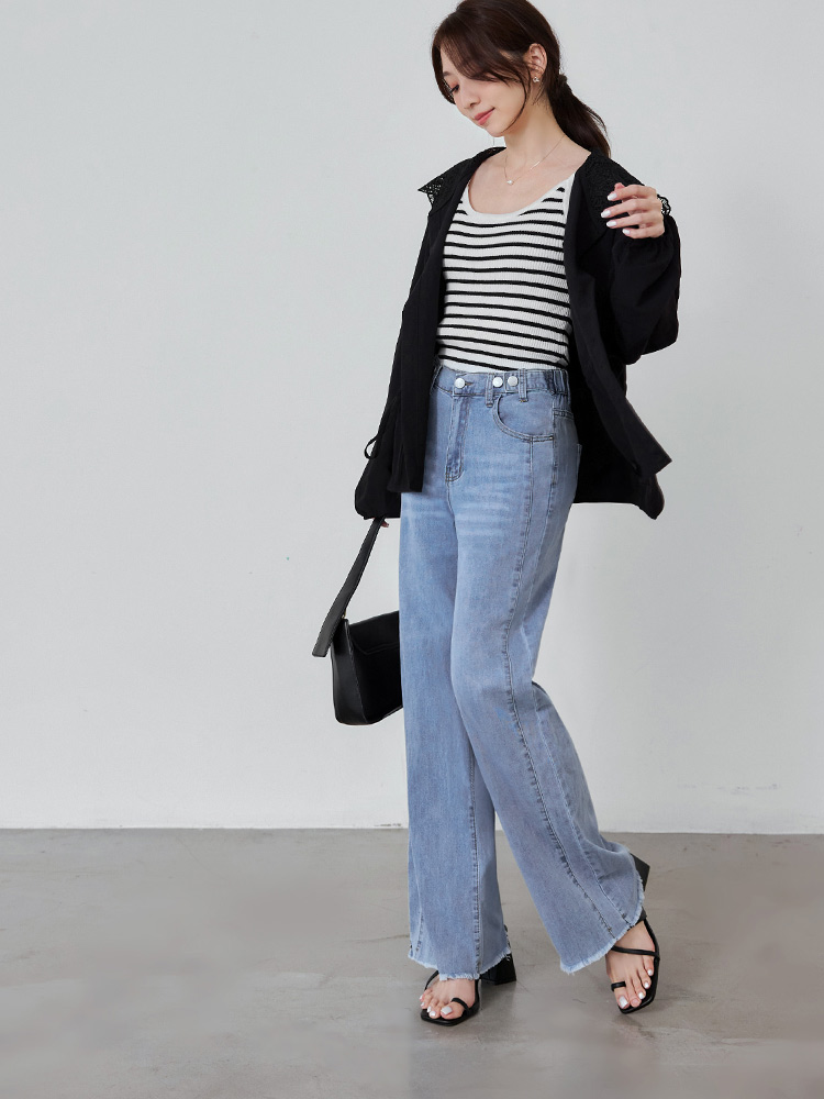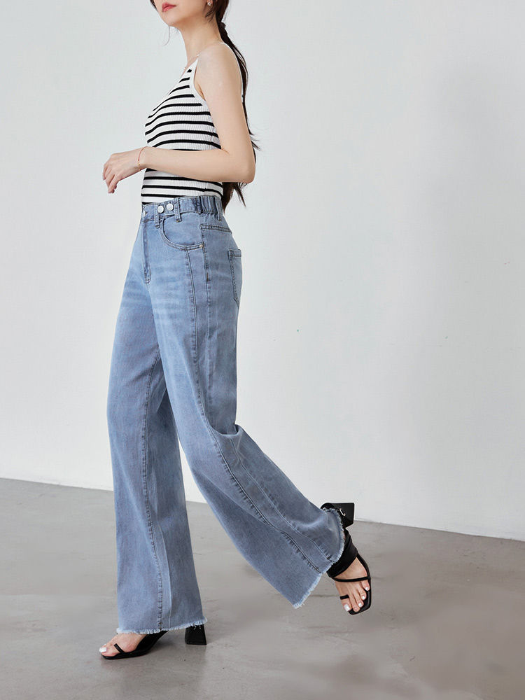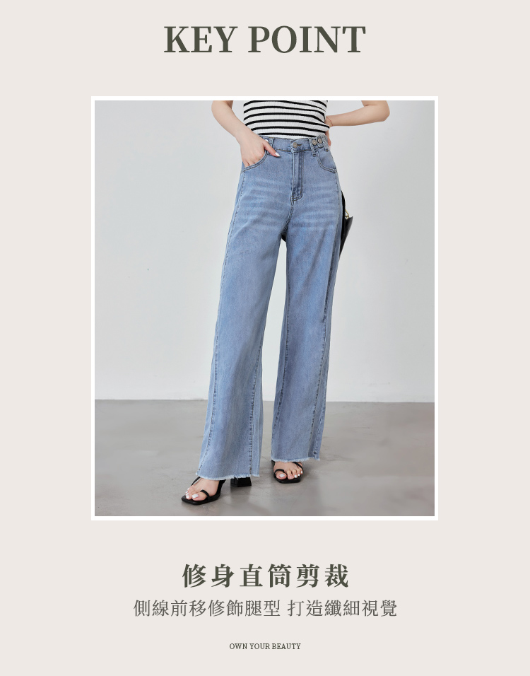 Product Feature: โ Crafted from comfortable, washed cotton denim for a soft feel. โ Features a straight-leg cut and forward-shifted side seams for a flattering, slimming silhouette. โ Equipped with an elasticated back waistband, functional button, and zip fly for a secure, comfortable fit. โ Complete with functional front and back pockets for practicality.