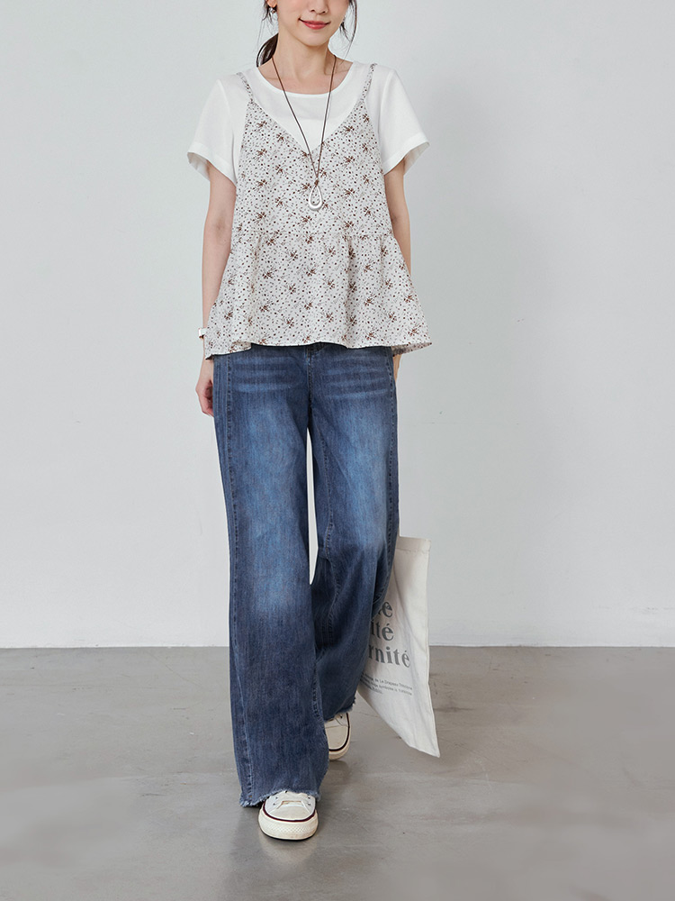 Washed Cotton Straight-Leg Denim Trousers with Frayed Hem (3XL~5XL)