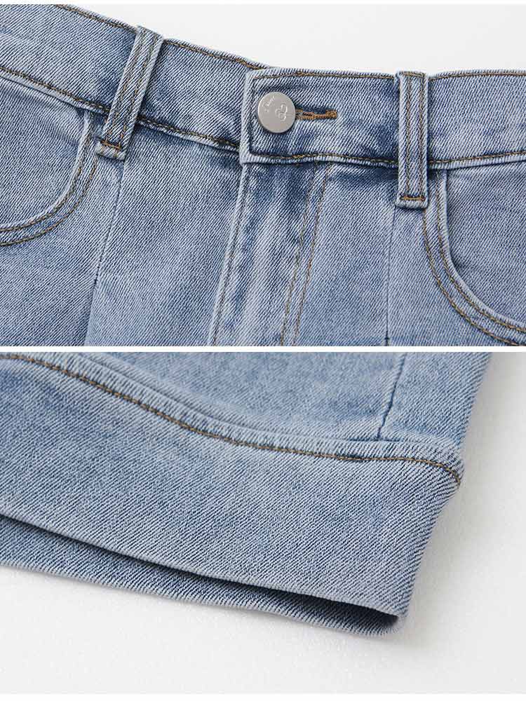 Product Feature: โ Features an elasticated back waistband for a comfortable, adaptable fit. โ Designed with a wide leg opening to create a visually slimmer thigh silhouette. โ Equipped with functional button and zip fly closure, plus genuine front and back pockets. โ Crafted from a skin-friendly, comfortable denim fabric with a subtle stretch for ease of movement.