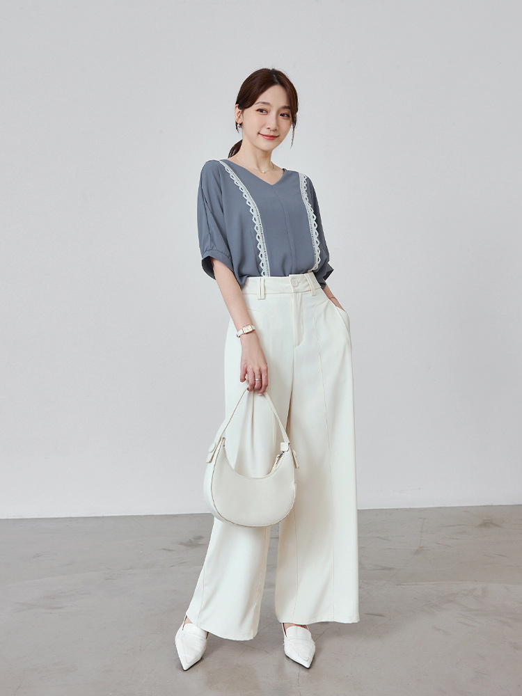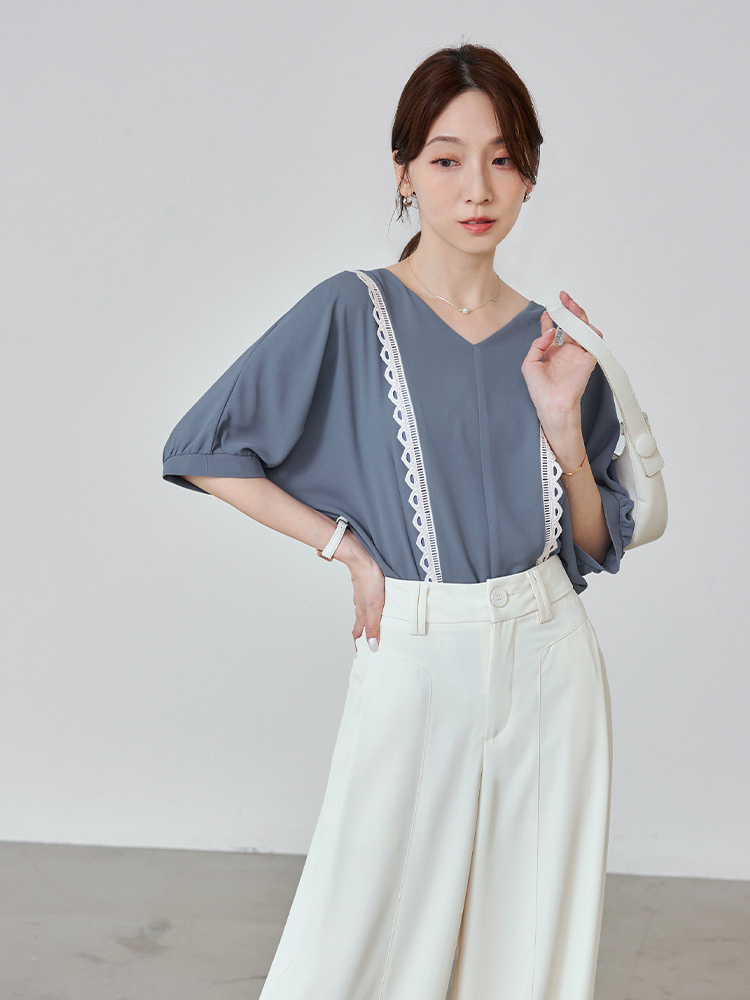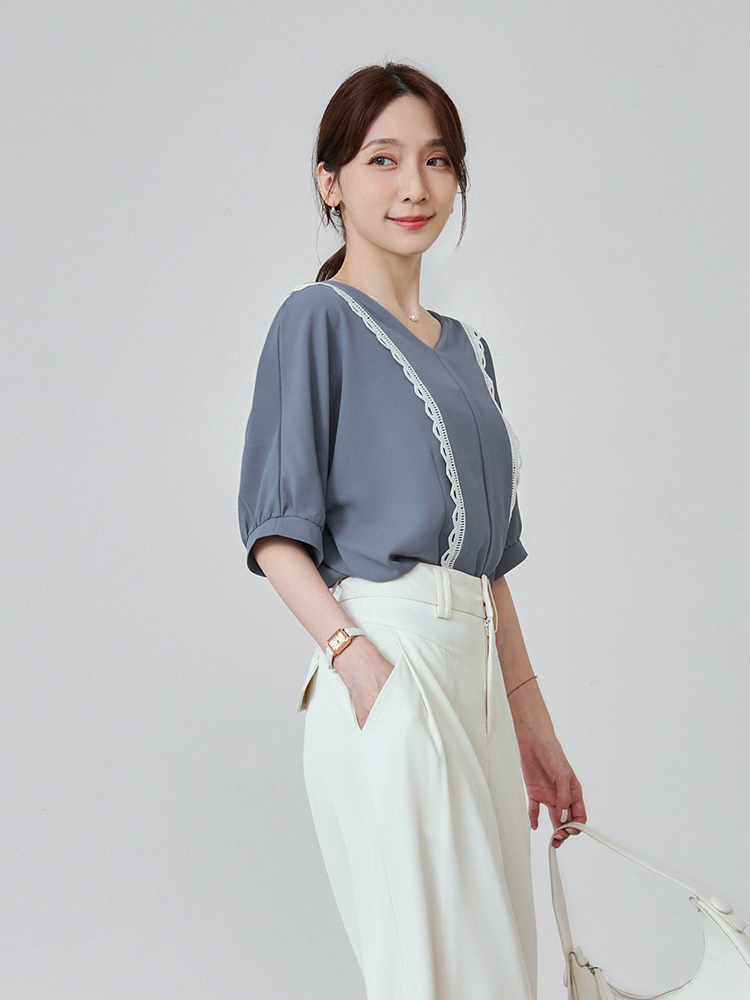 Product Feature: โ Crafted from a premium wrinkle-resistant fabric for effortless care and easy maintenance. โ Features an elegant V-neck design with stylish front lace trim for an eye-catching highlight. โ Designed with a connected sleeve style that subtly flatters and conceals the upper arms.