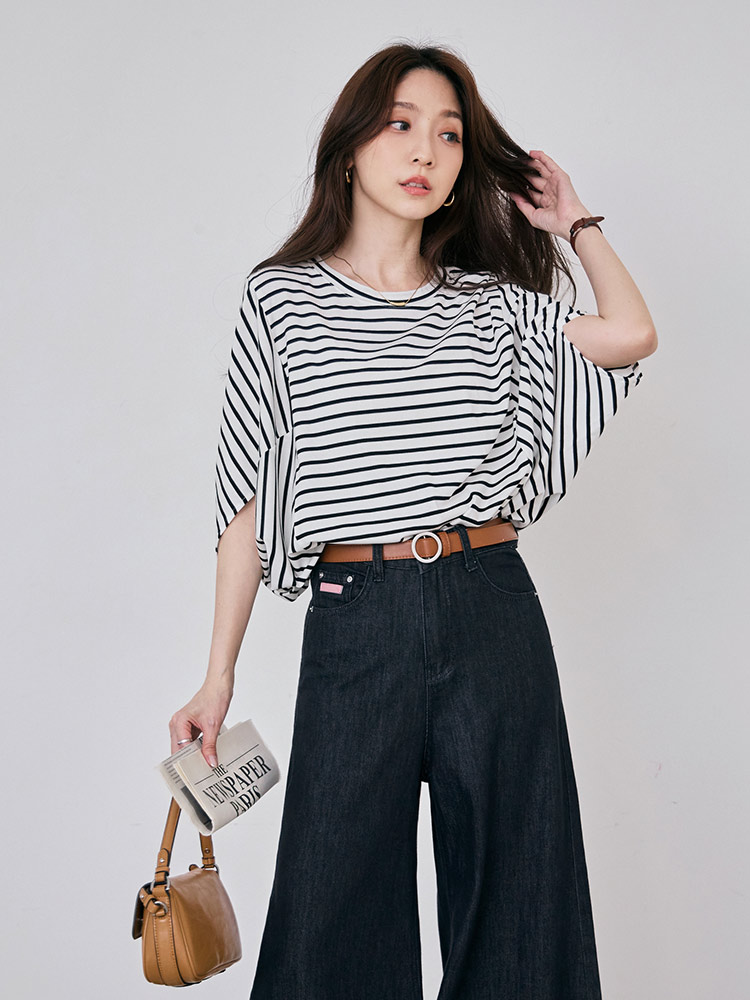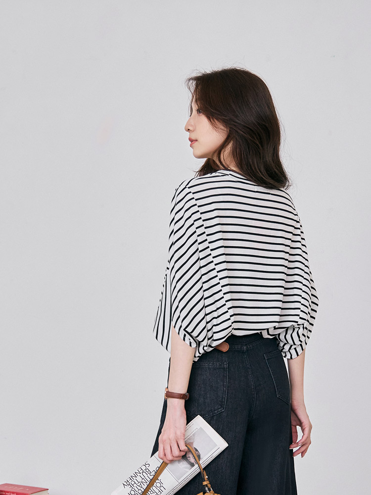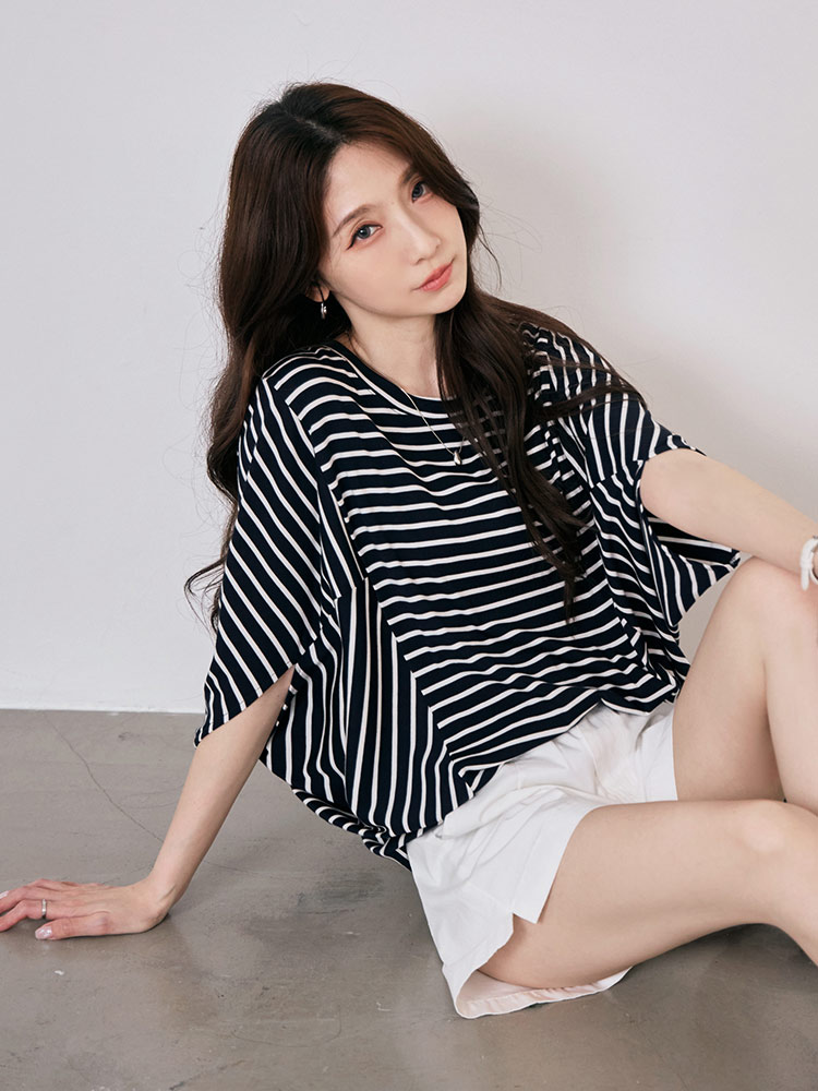 Product Feature: โ Crafted from a skin-friendly, soft fabric for a cool and breathable feel, ensuring ultimate comfort. โ Features an all-over striped design, making it perfect for versatile casual everyday styling. โ The stylish dolman sleeve cut provides a relaxed fit and offers a flattering silhouette.