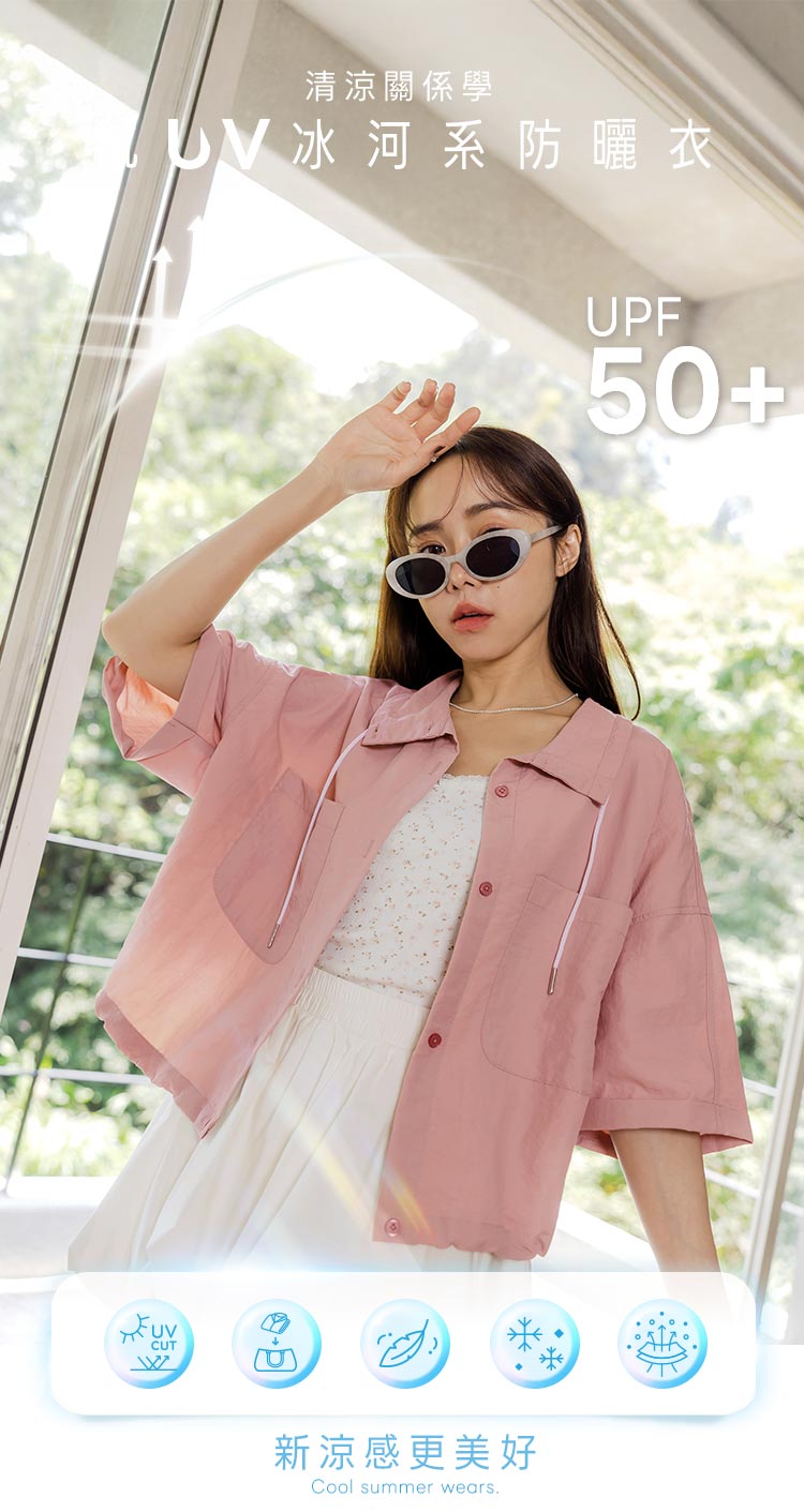Air COOL UV Cooling Cotton Cropped Straight-Neck Tee (S~XL)