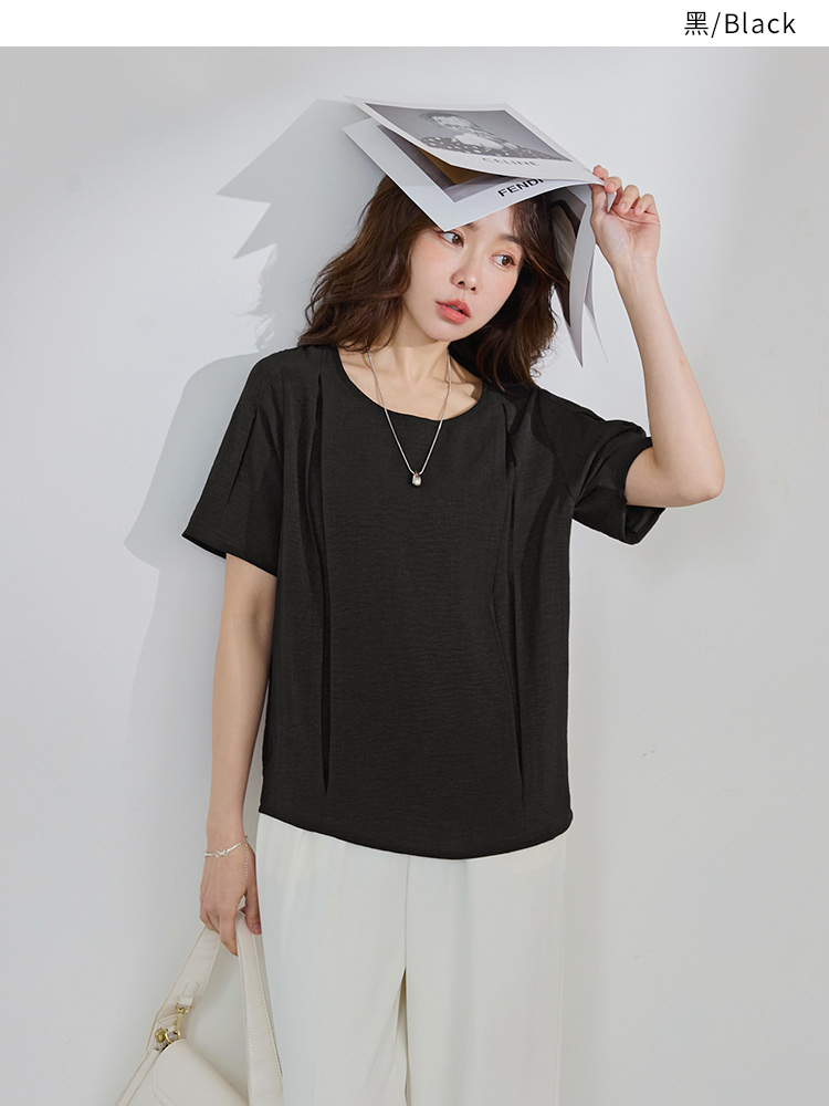 Air COOL UV Cooling Textured Pleated Short-Sleeved Top