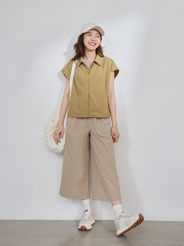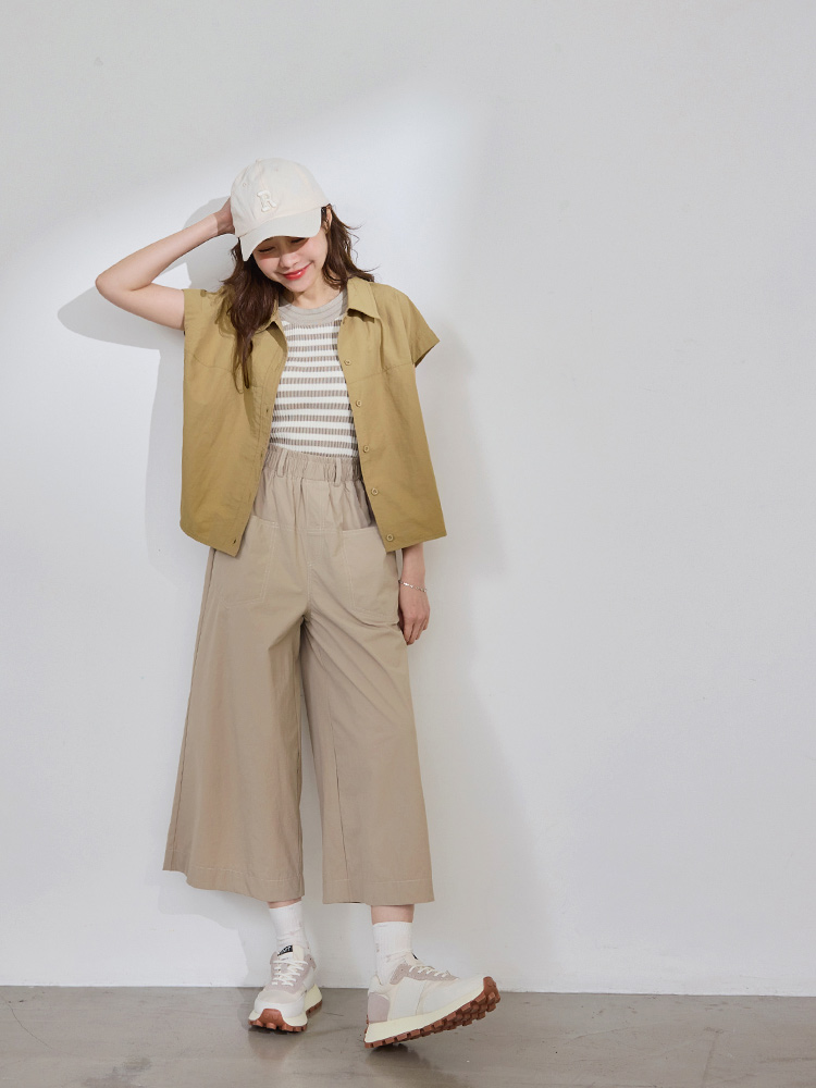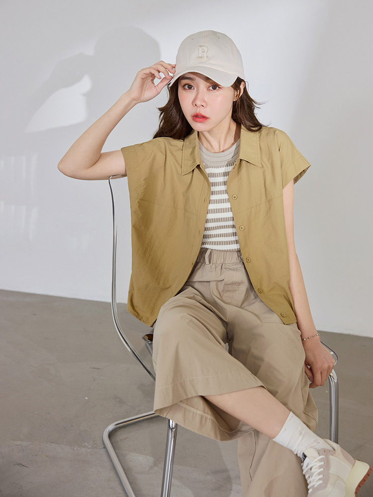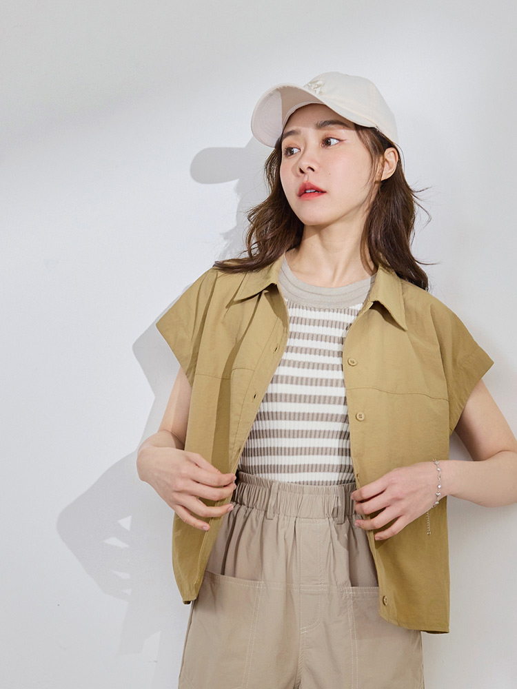 Product Feature: โ Functional front buttons for ease of wear โ Crafted from water-repellent fabric for practical use โ Cap sleeve design gently flatters the arms โ Cropped silhouette to elongate your proportions
