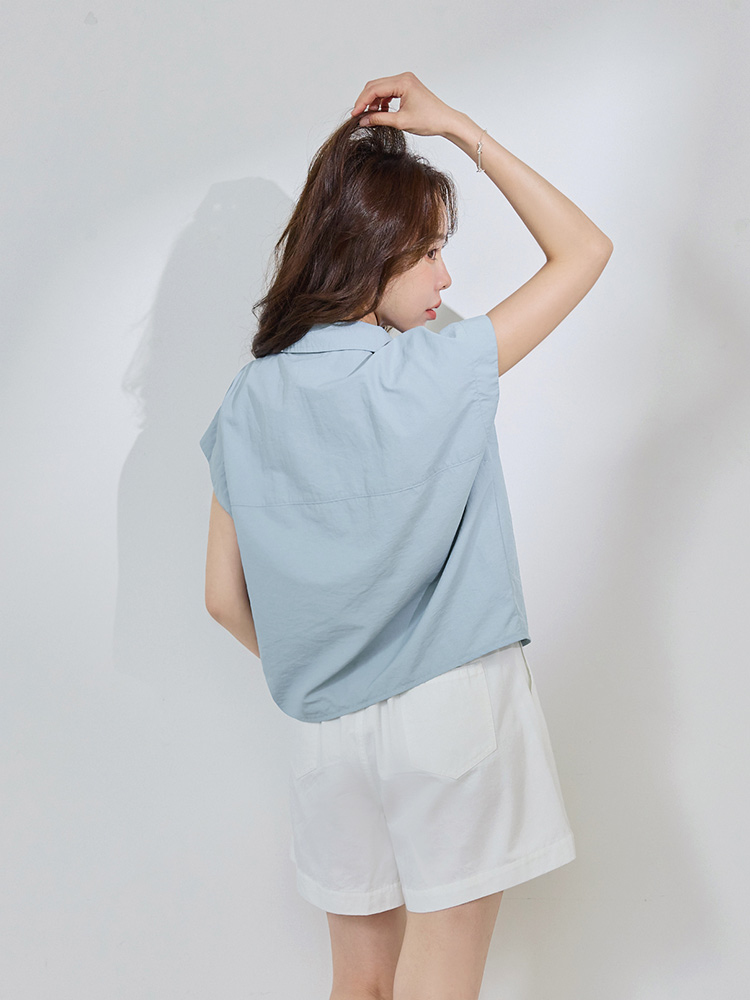 Air COOL UV Cooling Cotton Cropped Straight-Neck Tee (S~XL)