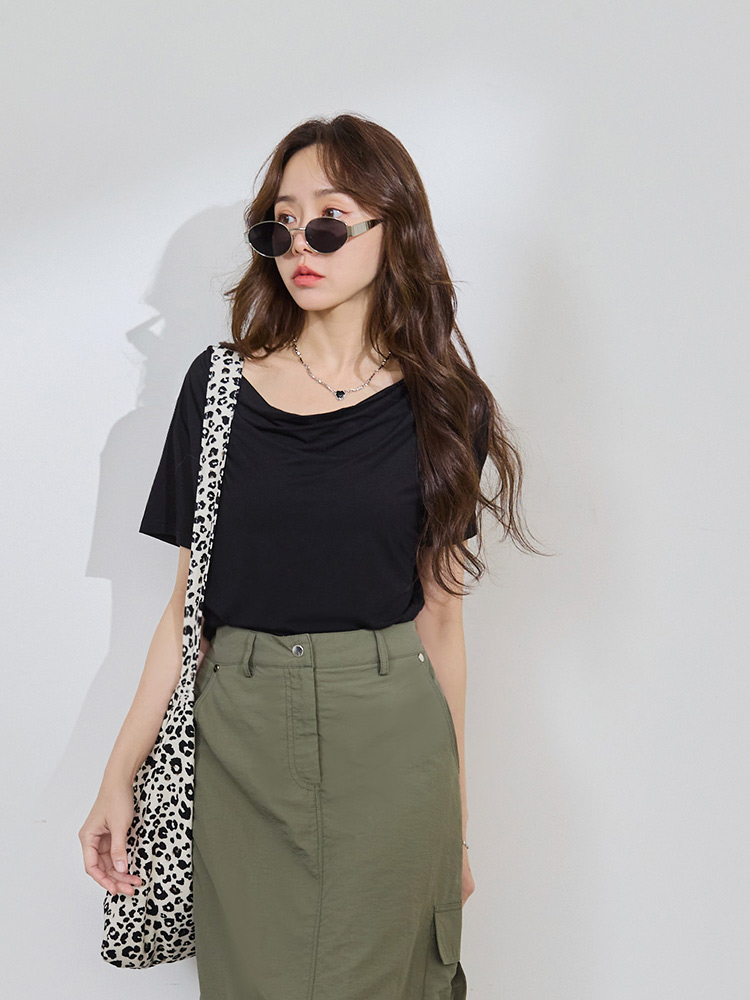 Air COOL UV Cooling Cotton Cropped Straight-Neck Tee (S~XL)
