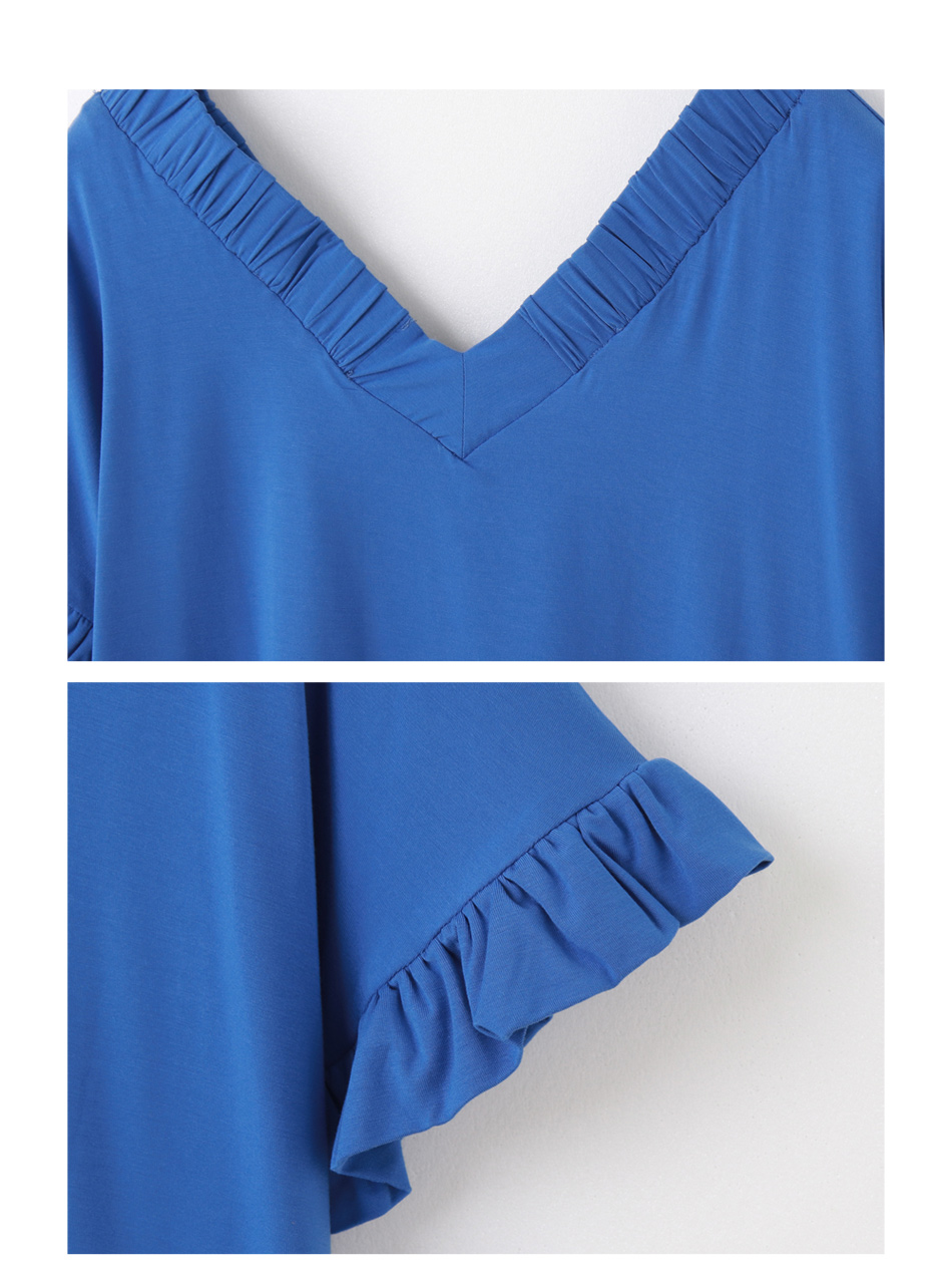 Product Feature: โ Elasticated neckline for a comfortable fit โ Crafted from cooling, lightweight Modal for ultimate comfort โ Features fresh, flowing ruffle sleeves โ Versatile design allows for both off-shoulder and V-neck styling
