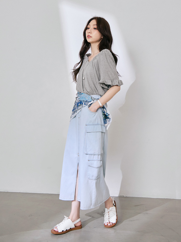 Air COOL UV Cooling Modal Ruffle Sleeve V-Neck Top