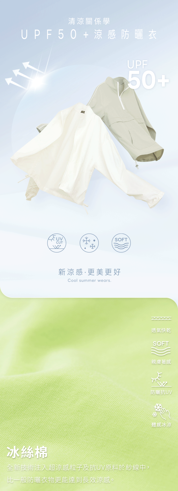 Air COOL UV Cooling Cotton Cropped Straight-Neck Tee (S~XL)