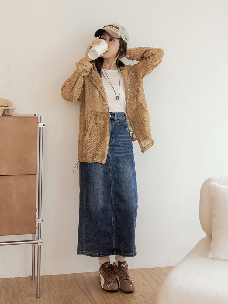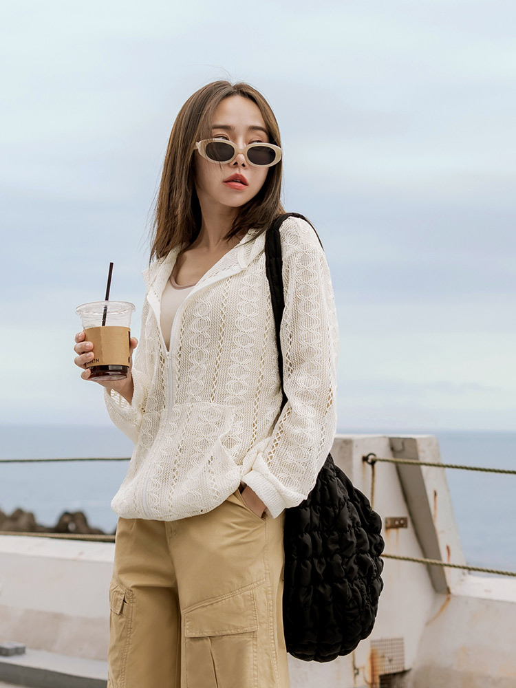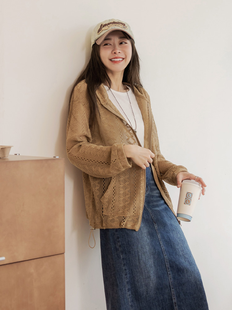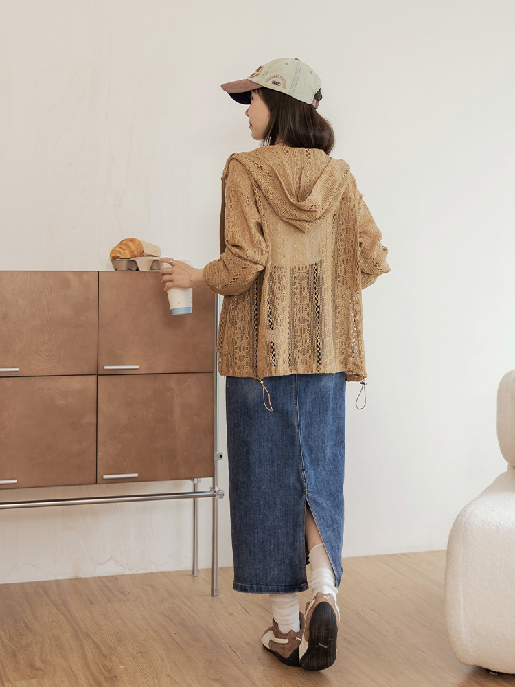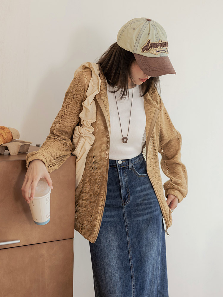 Sheer Lace Hooded Zip Jacket