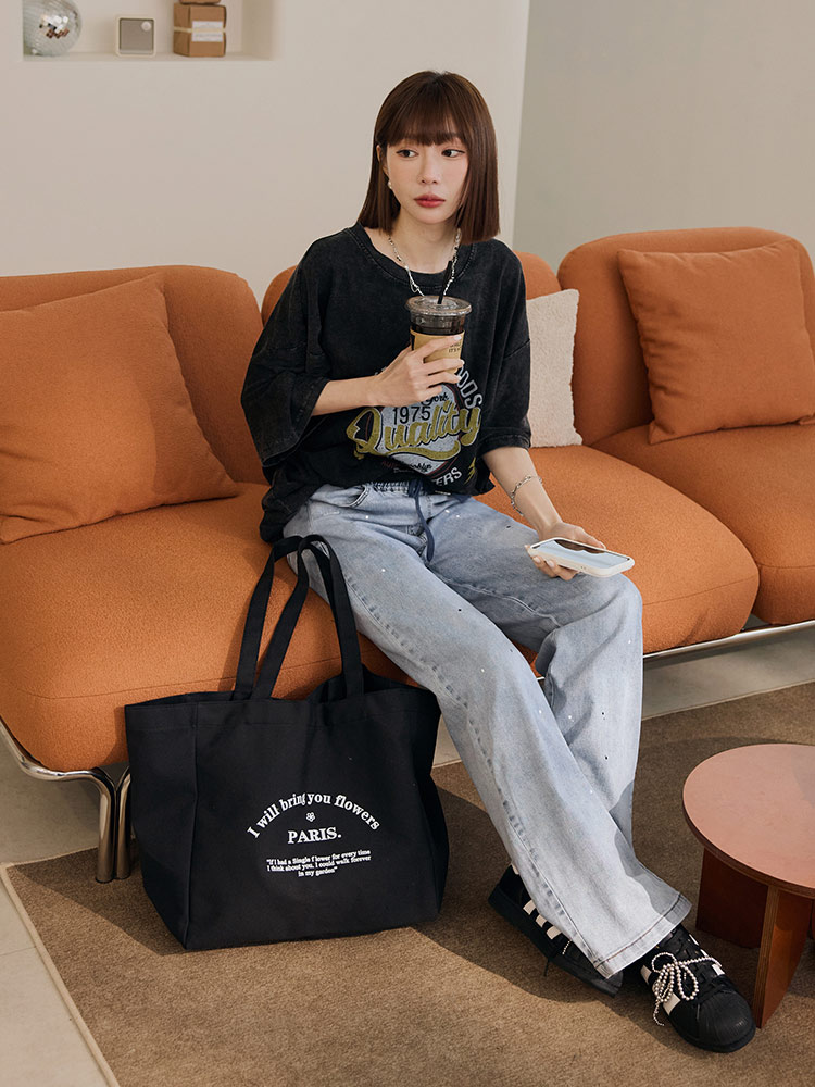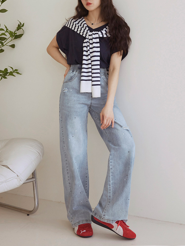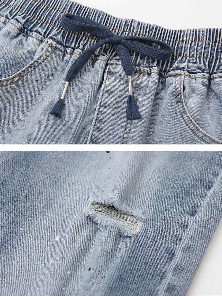 Spray Paint Distressed Elastic Waist Straight Leg Jeans (2XL~4XL)