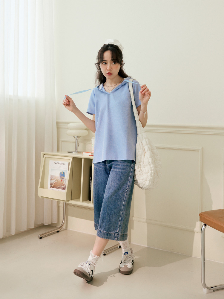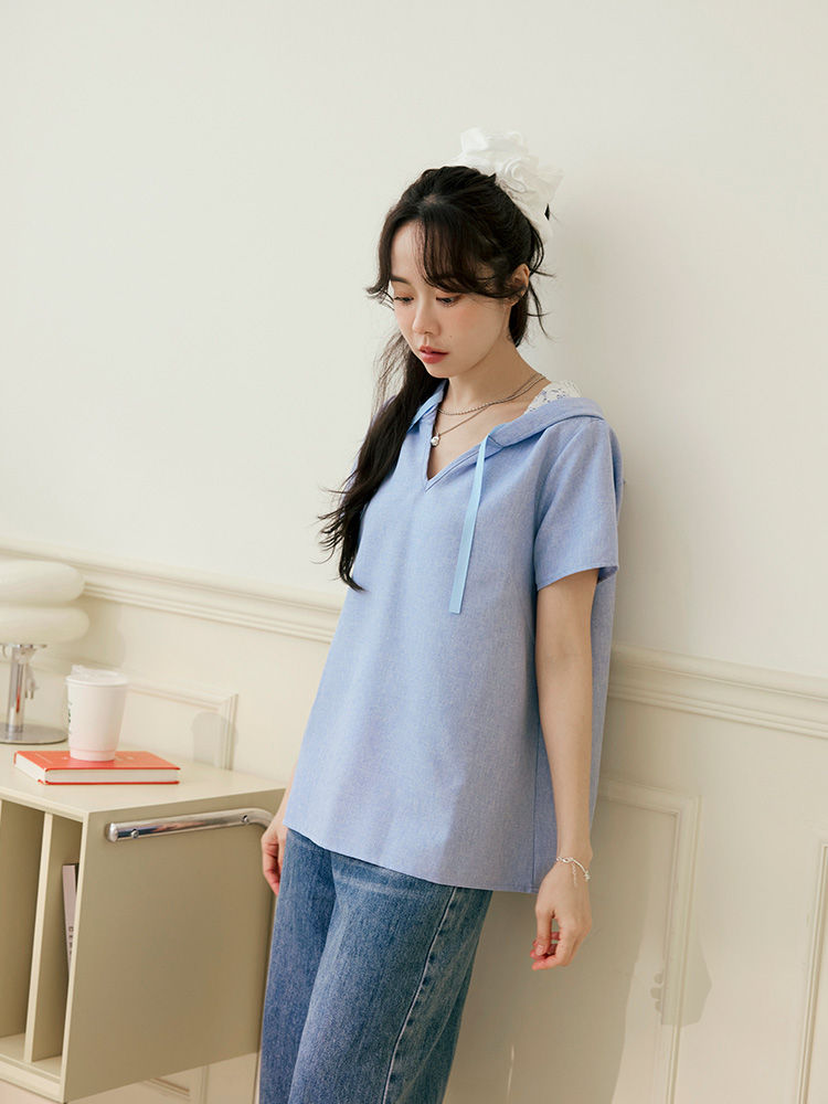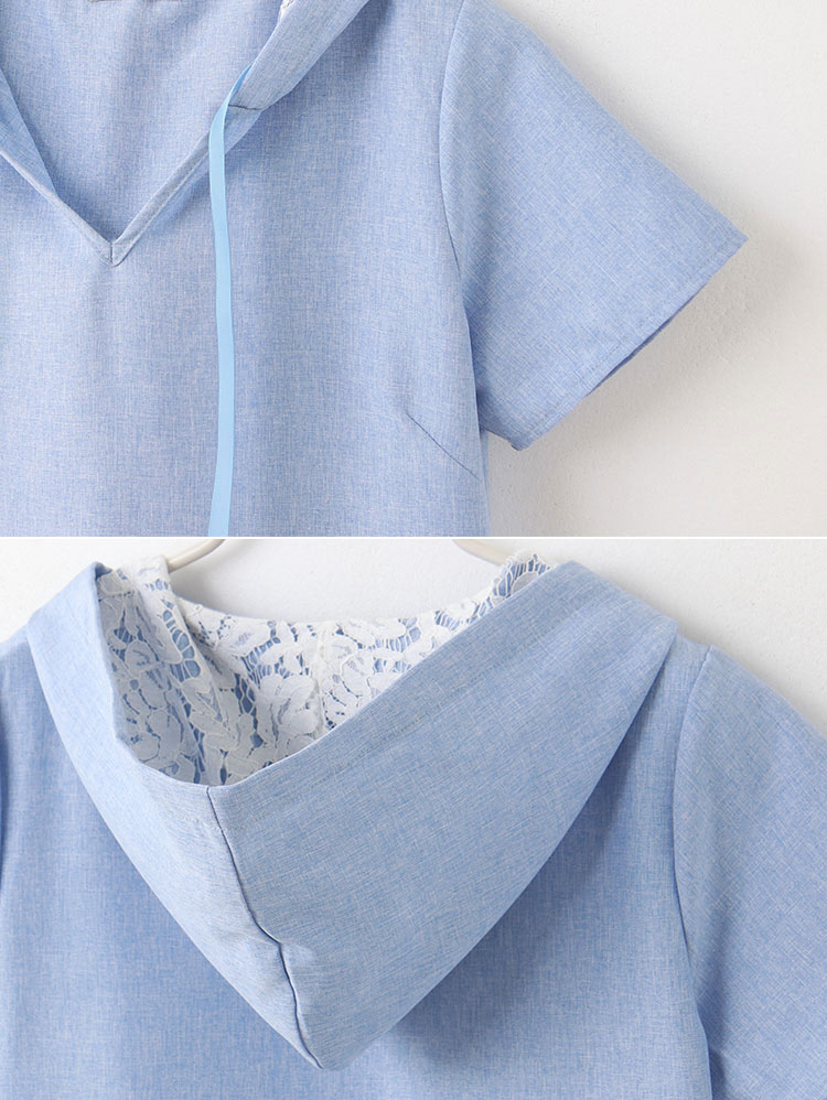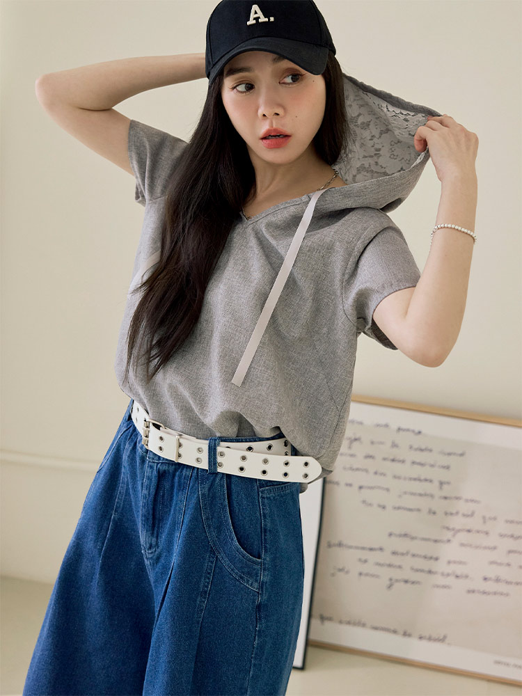 Product Feature: โ Features a flattering V-neck design. โ Adjustable drawstring on the hood for a customised fit. โ Delicate lace lining within the hood adds a chic highlight.