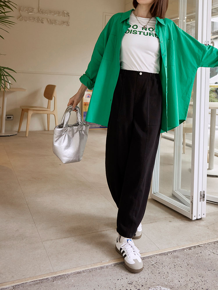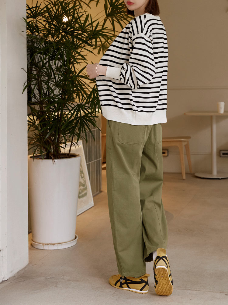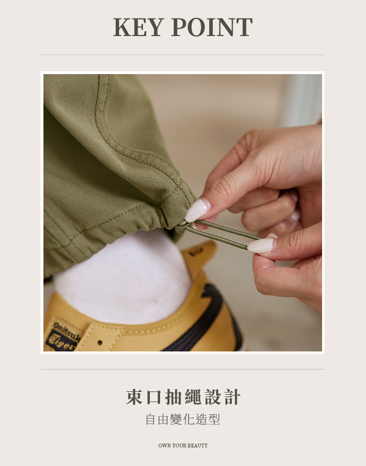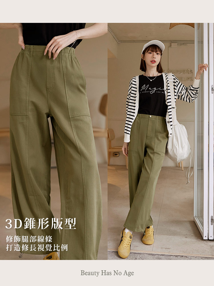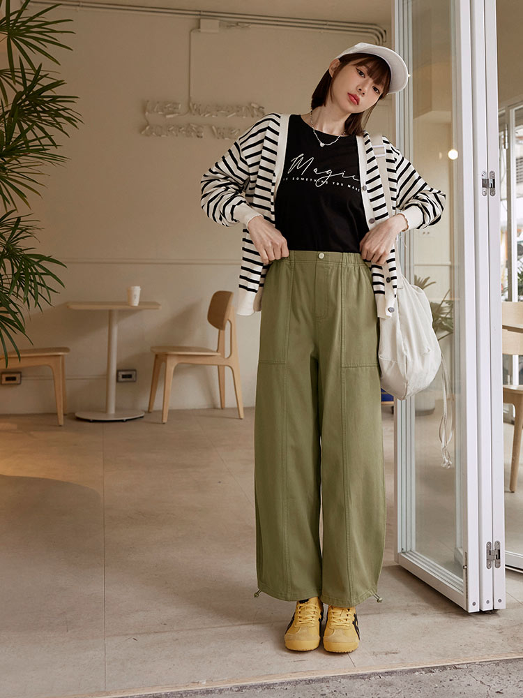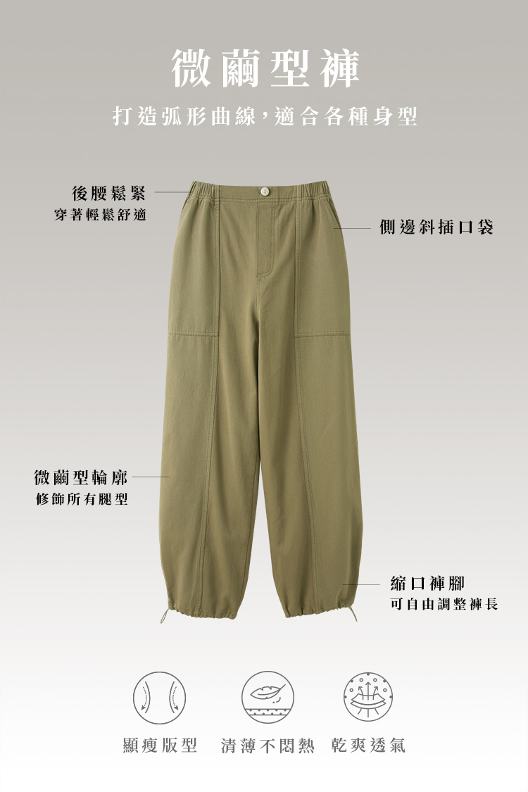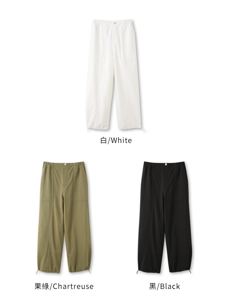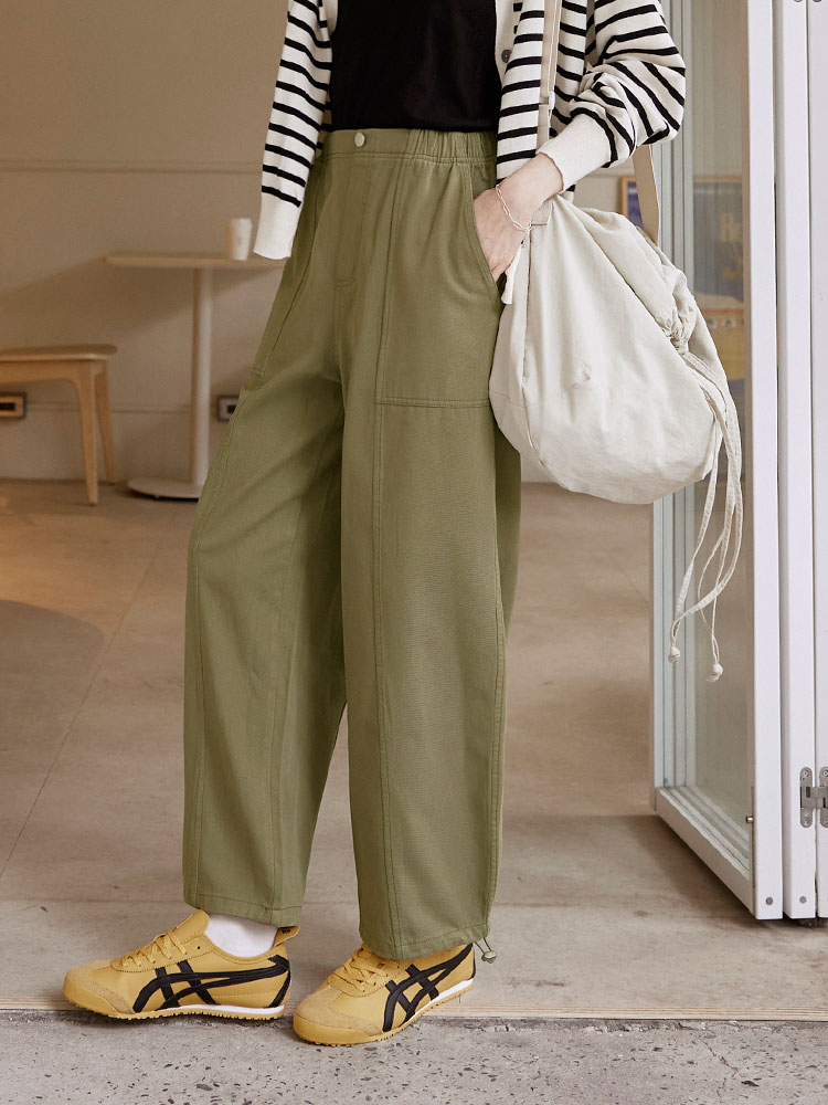 Product Feature: โ Crafted from comfortable, skin-friendly pure cotton twill fabric. โ Features a full elasticated waist for ultimate comfort and fit. โ Equipped with practical functional front and back pockets. โ Stylish stitching details enhance the overall design. โ Adjustable drawstring cuffs allow for versatile styling and a flattering cocoon silhouette.