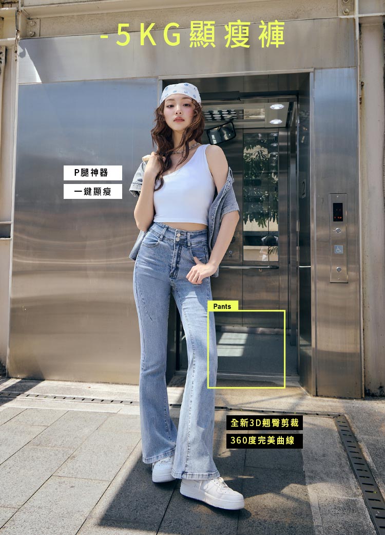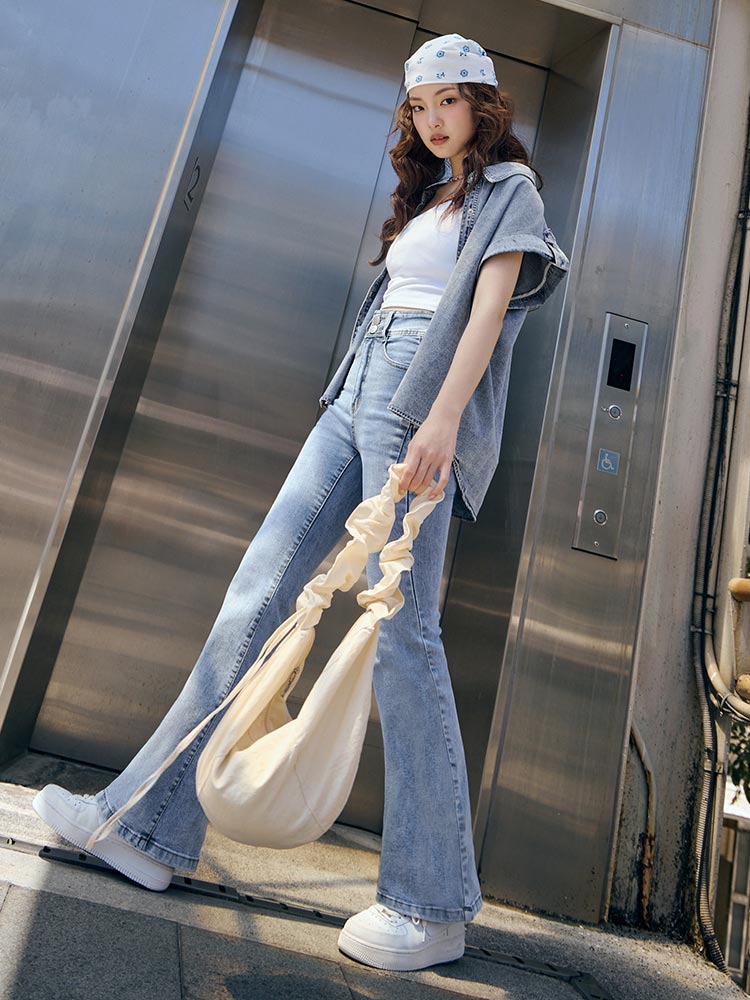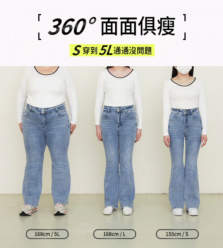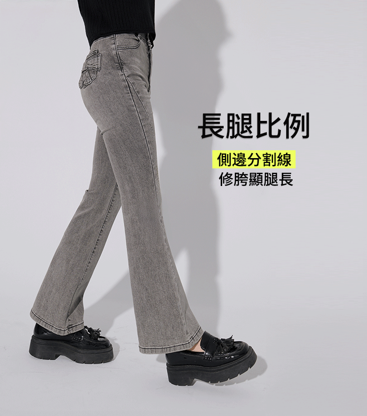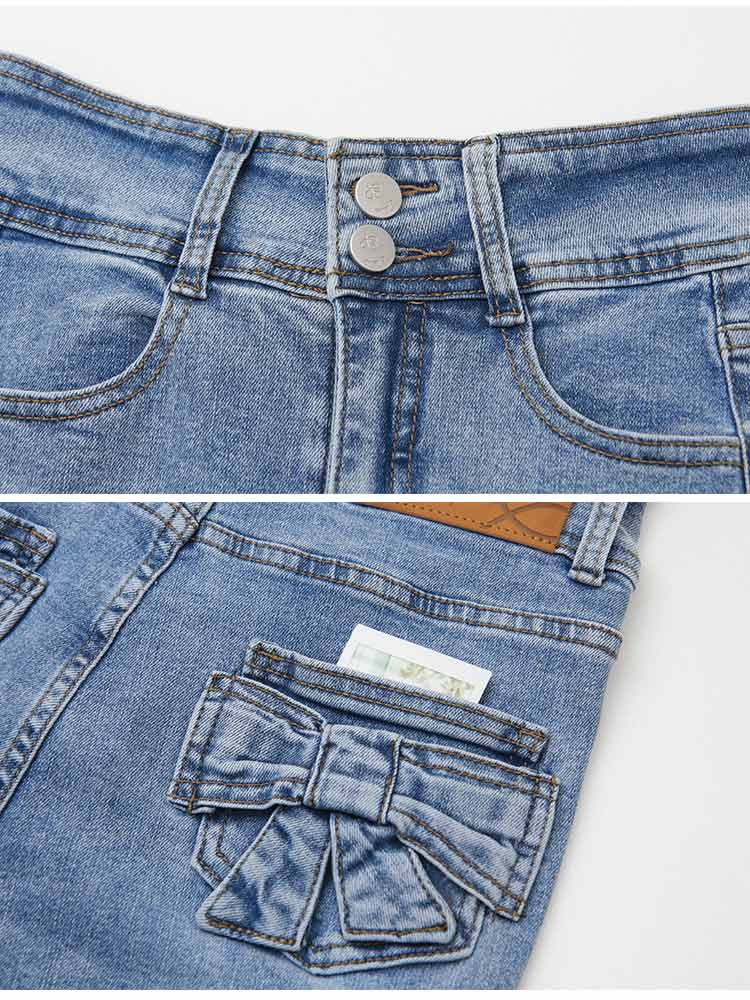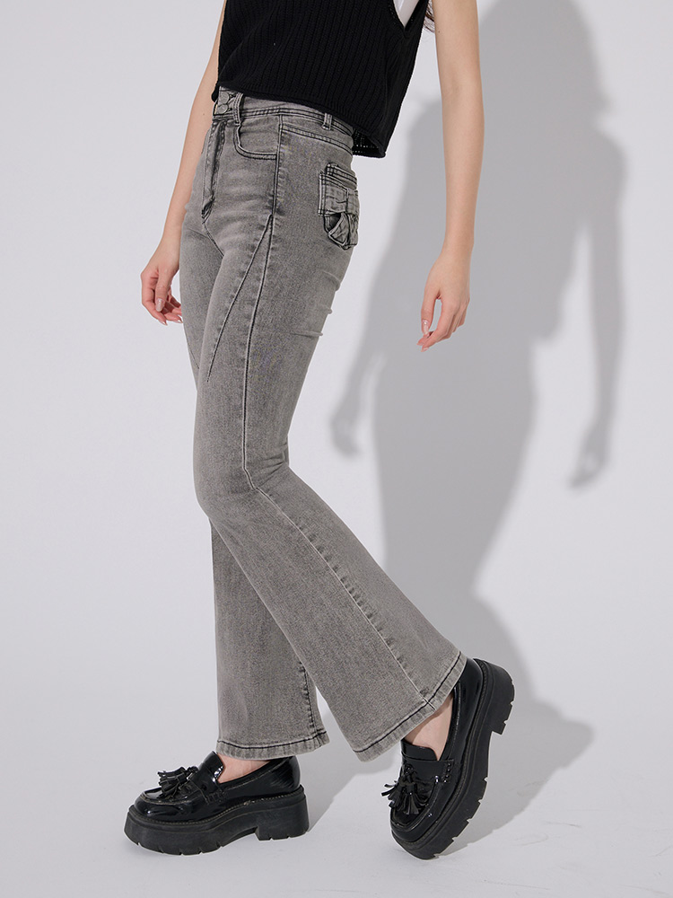-5KG 3D Bow Pocket Slimming Flare Denim Trousers (2XL~5XL)