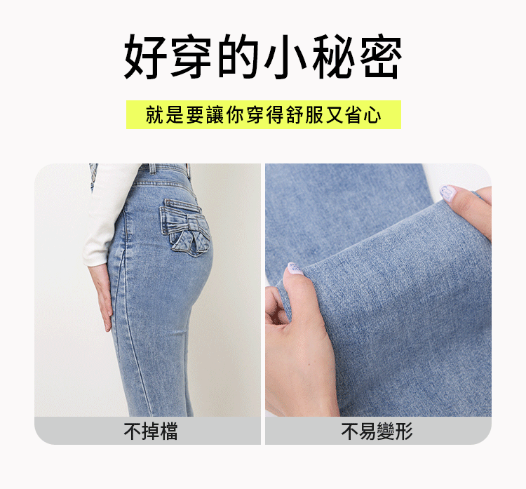 Product Feature: โ Features functional buttons, a zip fly, and genuine pockets for practicality. โ Crafted with excellent stretch for ultimate comfort, whether standing or seated. โ Designed with flattering side seams to sculpt your figure and elongate your legs. โ The innovative 3D bow detail cleverly enhances your silhouette. โ Boasts a fashionable wash, adding a sophisticated layer to any outfit.