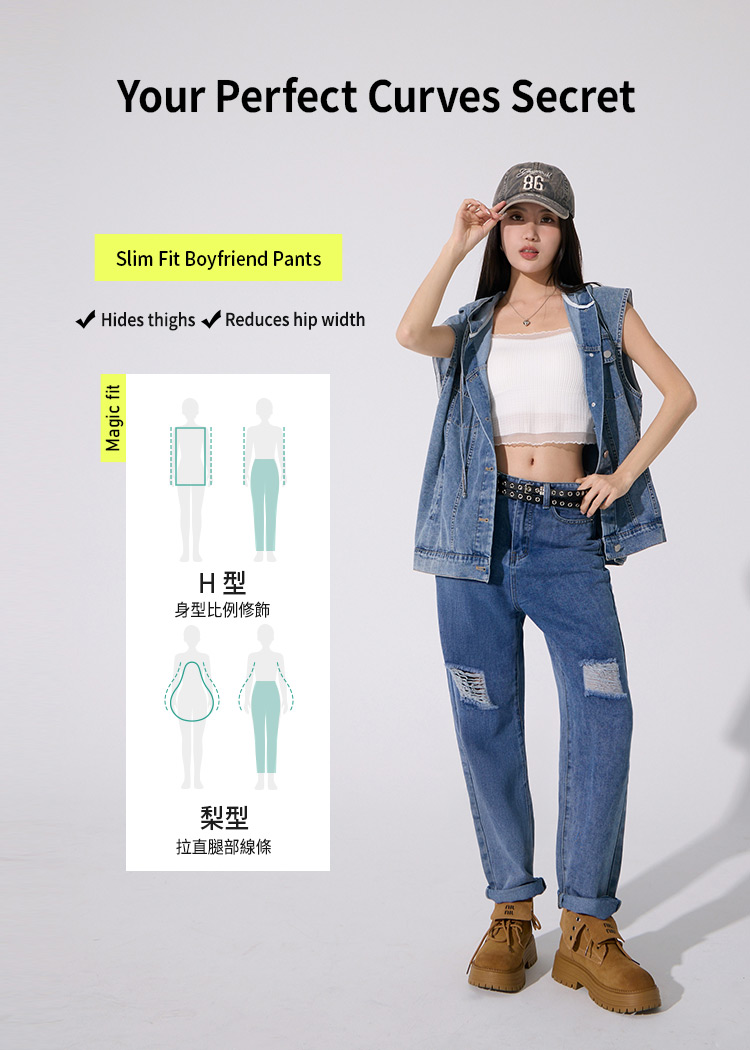 Product Feature: โ Fully functional buttons, zip fly, and real pockets for practical wear. โ Relaxed fit designed to flatter the hips and provide a slimming silhouette. โ On-trend distressed detailing offers a stylish and casual aesthetic. โ Versatile roll-up cuffs allow for multiple styling options.