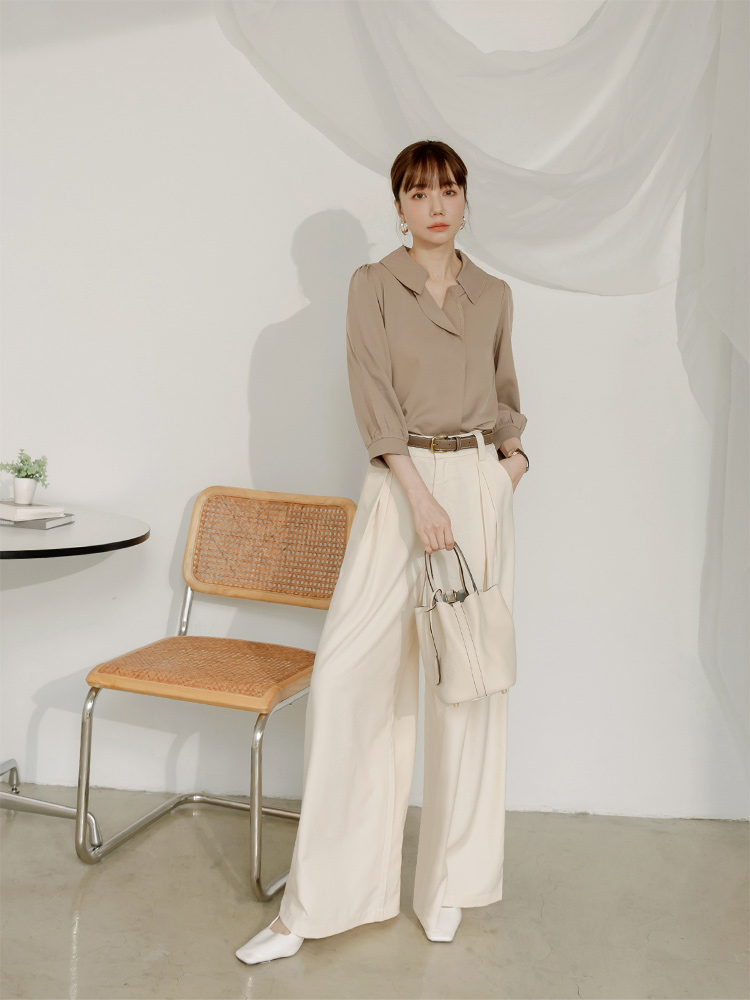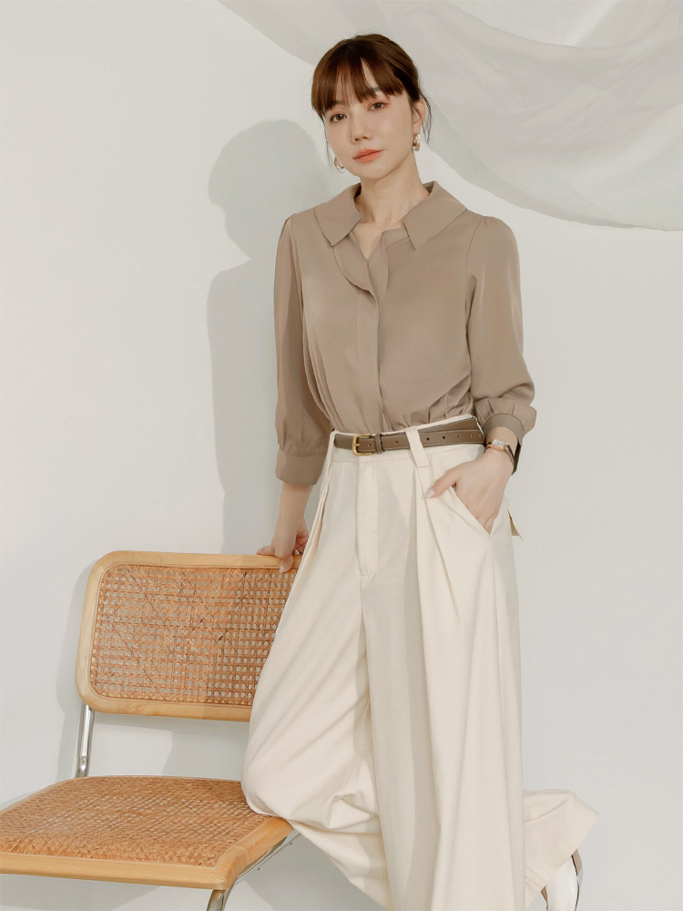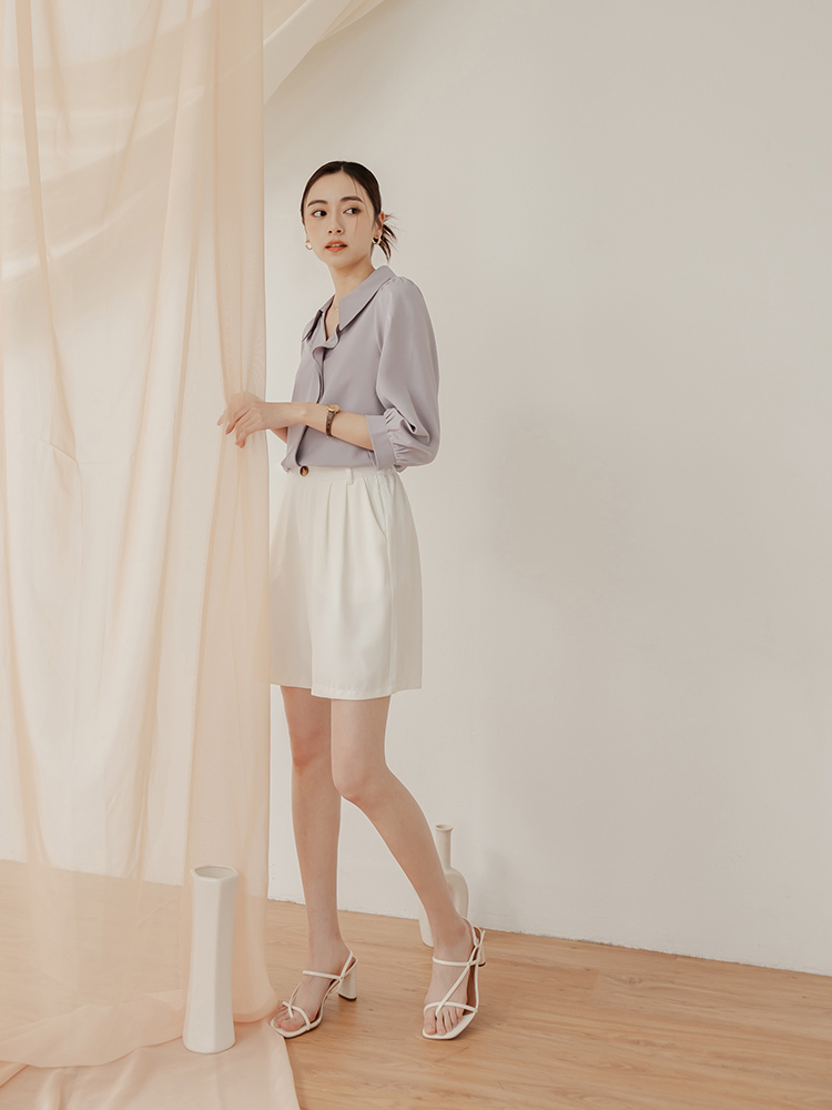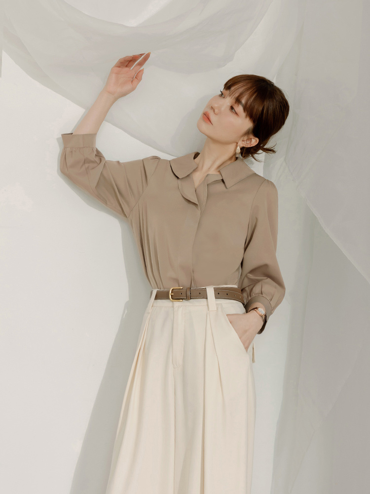 Ruffle-Trimmed Collared Blouse