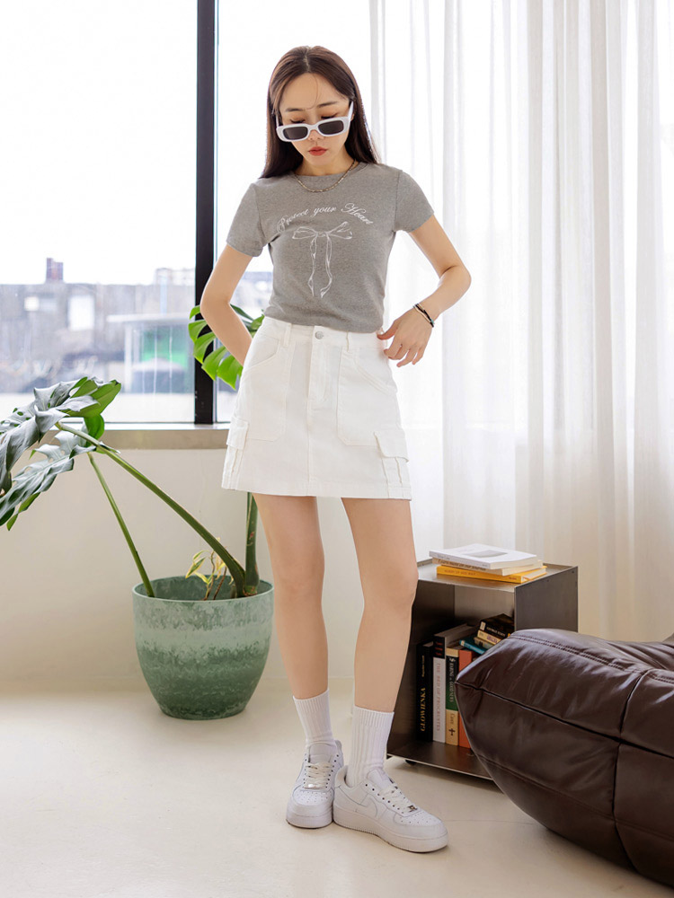 Cotton Pocketed A-Line Mini Skirt